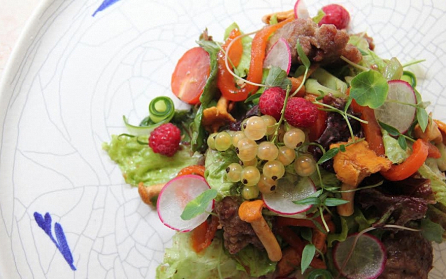 В ресторане русской кухни лисички жарят вместе с молодым картофелем и тимьяном, а из маринованных грибов готовят салат с куриной печенью и малиновой заправкой.