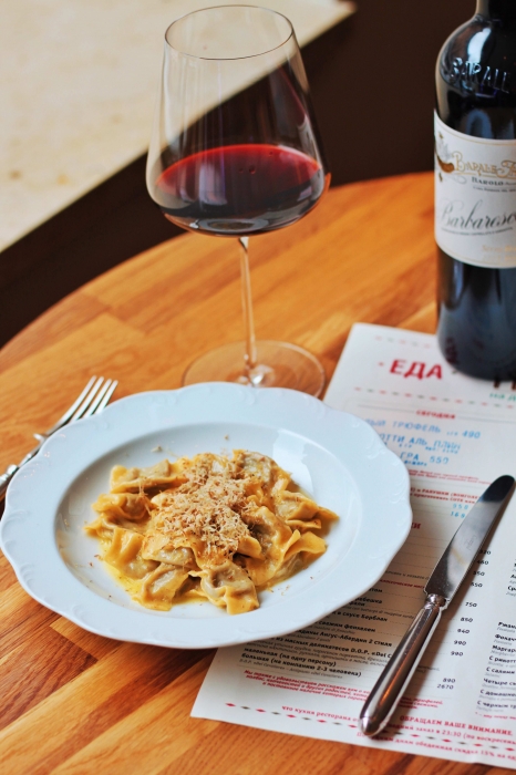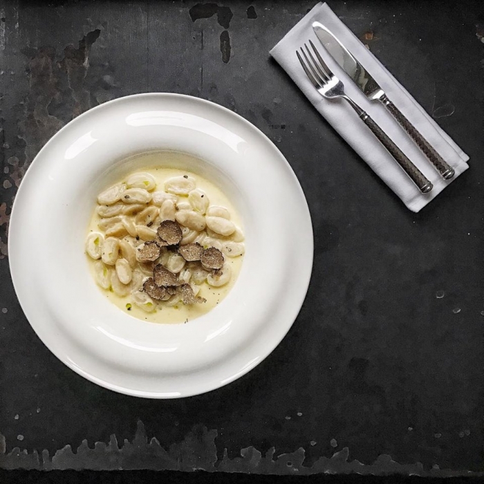 За 490 рублей за один грамм белый трюфель здесь украсит любую из эталонных пицц или паст, однако, особое внимание советуют обратить на сочетание этого гриба с аньолоти аль плин, тальолини или тортелли с бурратой. Отдельной строкой стоит главный хит — пицца с белым трюфелем, которая была признана лучшей в городе по версии премии «Что где есть в Петербурге».