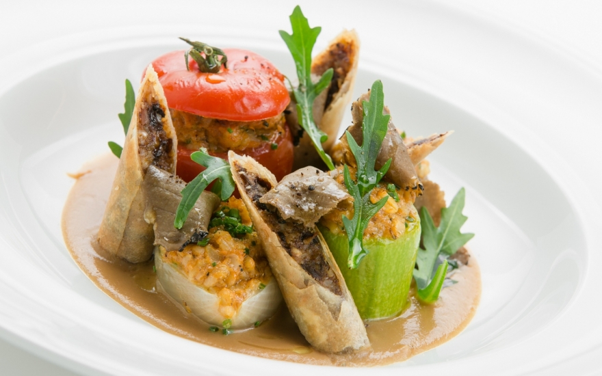 В «Кемпински Мойка 22» меню Великого поста настолько изыскано, что ни о каком самоограничении не может идти речи: тут готовят томатный бульон с лемонграссом, овощной террин-гриль с домашними соленьями, лазанью из сельдерея с кокосовой пеной, лисичками и трюфельной пастой, киноа со свеклой, грушей и орехами и самсу с миндалем, яблоками и изюмом.