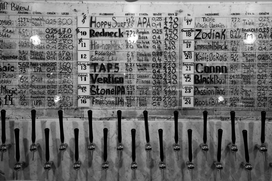 Пивной крафтовый бар, отказавшись от внешнего сходства с пабом, привлек самую широкую аудиторию к знакомству с имперскими и шоколадными стаутами, IPA и APA, квадрюпелями и барливайнами: рекордные двадцать четыре крана, таблица крепости и горечи сортов в размер менделеевской и аншлаги каждый вечер.