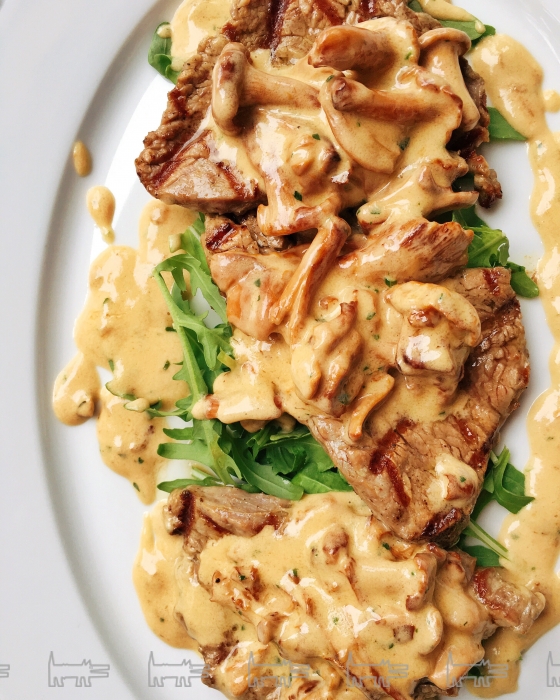 К мясным блюдам лисички идут обычно метафорической вишенкой на торте, то есть аккомпанируют основному продукту. В Hitch с лисичками — стейк-скерт, в Terassa — медальон из говядины, в «Бруно» — телячья вырезка с кремом из чеснока и летним трюфелем, в «Блоке» — котлеты из кролика, в «Пряностях & радостях» — фермерская говядина и мини-бургеры, в Bruxelles — медальоны из северного оленя с лисичками.