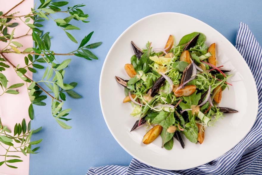 Так как лето было такое, что и худеть к нему было без надобности, сейчас самое время, пока еще действуют летние меню, начать ЗОЖ-марафон к Новому году. Легкие специальные салаты есть в Jerome — здесь, например, шеф-повар Антонио Фреза готовит карпаччо из цукини. В «Рубинштейне» делают закуску из жареного редиса и томатов, в Gras — салат из овощей, заправленных соусом из оливкового масла. В «Пробке на Добролюбова» маринованный осьминог соединяется с цикорием и листьями мангольда, в «Гирлянде» подают цитрусовый микс с креветками и рикоттой. В Manneken Pis добились идеального симбиоза арбуза, феты, огурца и бальзамических жемчужин. Заменить целый ланч смогут салат из утки в йогуртово-клубничной заправке в «Банщиках», дуэт копченой миноги и картофеля в горчичной заправке в «Блоке» и брутальный стейк из брокколи и копченой свеклы с козьим сыром в Smoke BBQ.