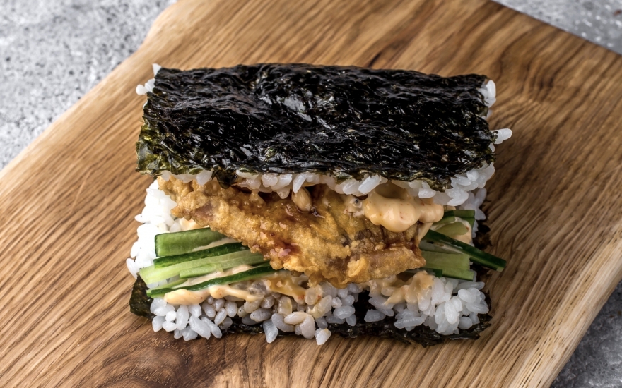 На острове японского архипелага таких блюд не делают; окинавский сэндвич — изобретение поварской команды бистро Ronny в Бутылке. Тянет на кулинарную шутку, которую удобно забирать с собой на прогулку по Новой Голландии, ведь по сути — это бутерброд из суши, где вместо хлеба упакованный в нори рис. Дают две версии: с цыпленком и соусом тонкацу и с лососем, омлетом и ядреным васаби-соусом.
