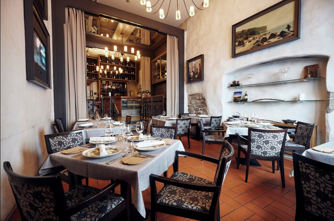 Ресторан авторской кухни расположен в старом городе в знаменитом отеле «Три сестры» — постройке XV века. Идеально подходит для заключительного ужина вашей поездки. Павел Гурьянов, ответственный за кухню, буквально с Amuse bouche дает понять, что ему одинаково важны как форма, так и содержание — старт в виде картофельного крокета подадут с ароматной черной угольной корочкой: горелкой обожгут прямо в тарелке. На закуску берите гребешок в утином консоме — принесут в раковине, отдельно поливая бульоном. Стоит попробовать «рыбную мозаику»: кубики трески, форели и лосося в заправке из сметаны — сам шеф сравнивает соус «с тем самым вкусным, что остается после овощного салата». Не забудьте попросить персонал показать вам весь ресторан — особенно отдельный зал, в котором любят собираться дипломатические миссии и первые лица. Если найдете общий язык — наглейте и просите мини-экскурсию по всему отелю. Она того стоит!