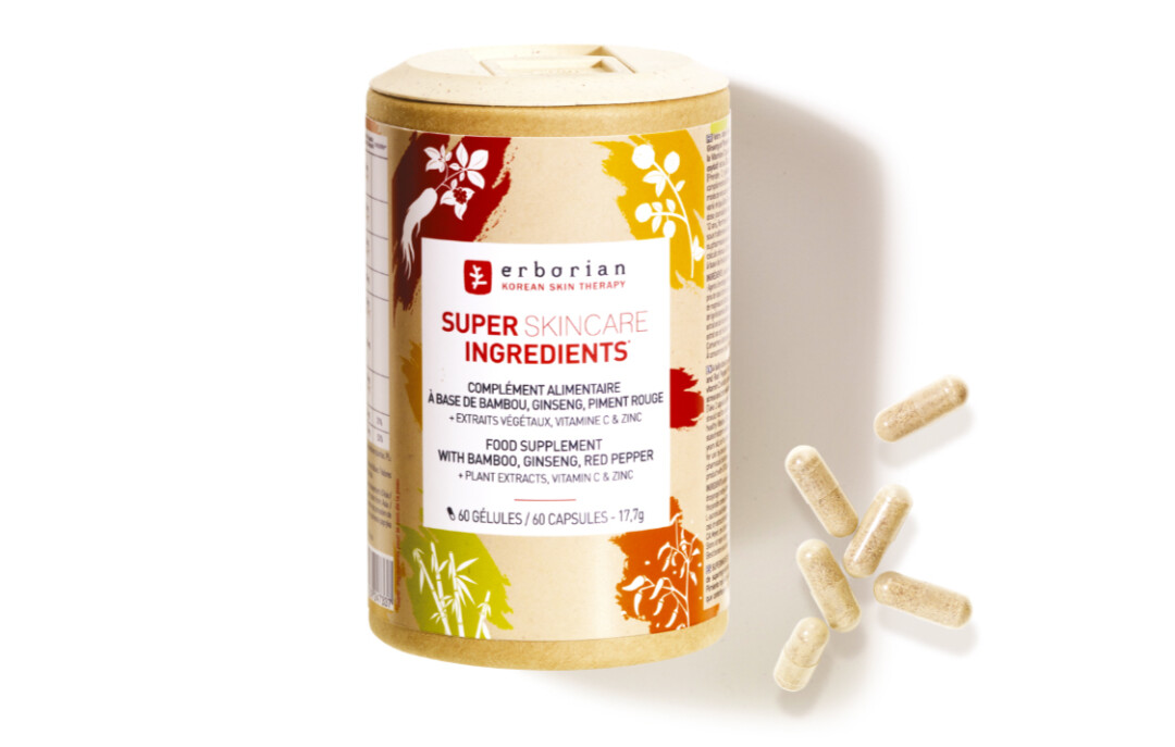 Наилучшего результата можно достичь, заботясь о коже не только снаружи, но и изнутри. Поэтому Erborian представили новинку: БАД «Сила суперингредиентов». Хорошо знакомые поклонникам бренда экстракты бамбука, женьшеня и красного перца работают не только в косметических формулах, но и в качестве нутриентов: в сочетании с растительными экстрактами, витамином С и цинком они способствует защите клеток от окислительного стресса, насыщению кожи влагой и поддержанию ее оптимального баланса.