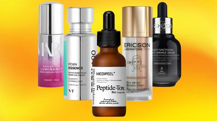 - Пептиды — короткие цепочки аминокислот, которые работают как сигнальные молекулы. Они заставляют фибробласты активно синтезировать коллаген и эластин. Некоторые, например, аргирелин, действуют по принципу ботоксоподобного расслабления мимических мышц.