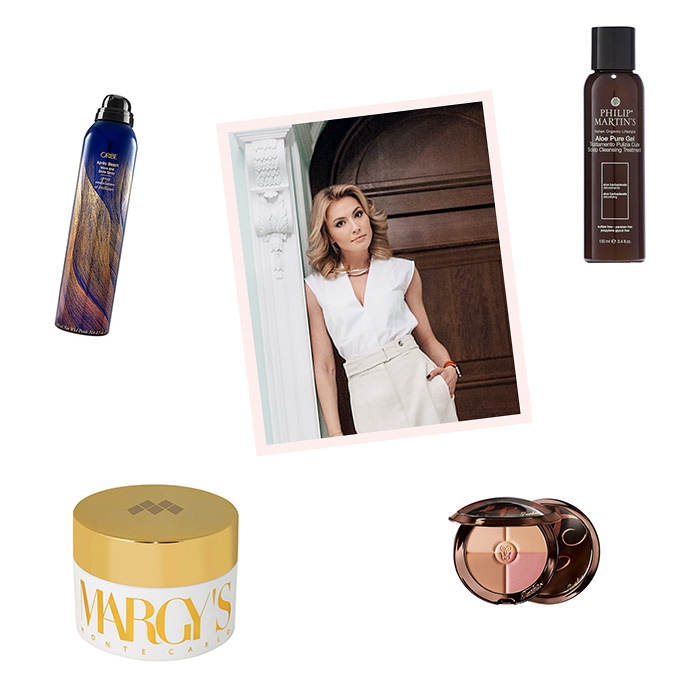 На канале «Санкт-Петербург» я читаю новости городской экономики. Работа на ТВ потребовала освоить профприемы скоростной укладки. Отлично справляюсь с плойкой Bosch — прическа выглядят объемно, красиво и естественно. А чтобы не навредить при этом волосам, пользуюсь Oribe Run-Through Detangling Primer. Обязательно раз в две недели захожу в салон Кирилла Кострюкова Botanic Beauty — делаю процедуры и закупаю косметику для волос и не только: на весну, например, запаслась кремами и лавандовым маслом роскошной швейцарской марки Margy's Monte Carlo, любимой монакскими девами, — искала ее по всему городу и нашла только у Кирилла.