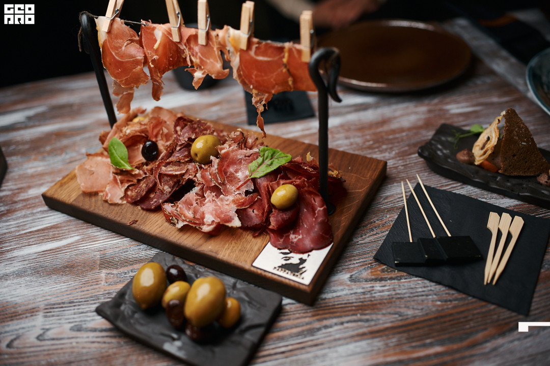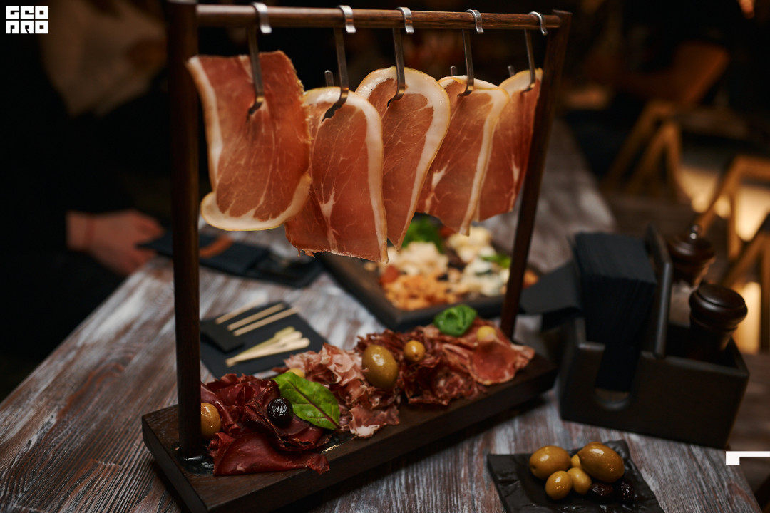 Помимо различной еды здесь можно насладиться изысканным вином. Мастерство сомелье не зря высоко ценят в европейских странах. Умение правильно дегустировать столь особый напиток зачастую по-новому раскрывает его купаж. А дополнить вкус вина помогут легкие закуски. Так же стоит отметить собственное производство сыровяленого мяса.