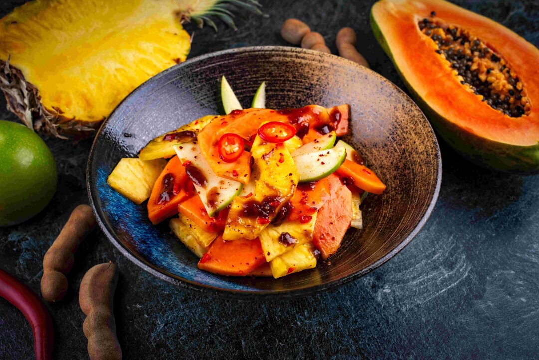 Экзотические фрукты в блюдах и напитках — это мейнстрим! Папайя и ананас — частые герои салатов, личи — мегапопулярный ингредиент коктейлей, без лимонада «манго-маракуйя» не обходится ни один уважающий себя ресторан. В десерты и милкшейки всё чаще добавляют питахайю. В беллини и мартини регулярно встречается пюре из гуавы, а еще этот фрукт был замечен в трендовых чизкейках. Отчасти интерес к тропическим фруктам связан с растущей популярностью азиатской кухни. Но главное — это красиво, полезно и очень вкусно. Попробуйте сделать на завтрак смузи из манго и куркумы, на обед — кебабы с курицей и ананасами с горячим медом, а на ужин севиче из креветок с соком юдзу. Это станет вашим крашем. Рецепты с тропическими фруктами от лучших шефов и кондитеров собрали тут.