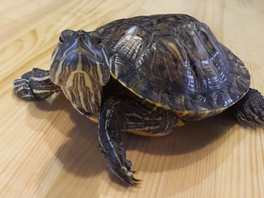 Майя, к неудовольствию уборщицы, наследила мокрыми лапами на столе и с моей помощью побежала искать другие приключения на свой панцирь.