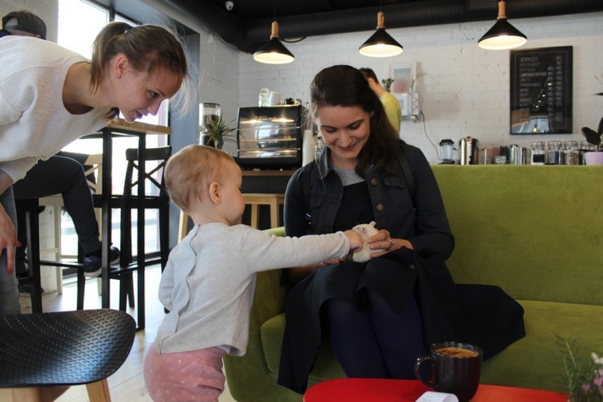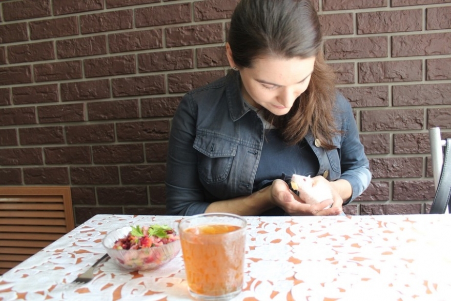 Я заказала кофе, но не знала, куда сесть: свободных мест не было. От неловкого положения нас спасла девушка с ребёнком, предложив присоединиться к их столику. Тут же подвинулась и другая девушка – на большом диване прямо посередине кофейни. Посетителей крыска не смутила: Алисе улыбались, а некоторые даже подходили погладить.