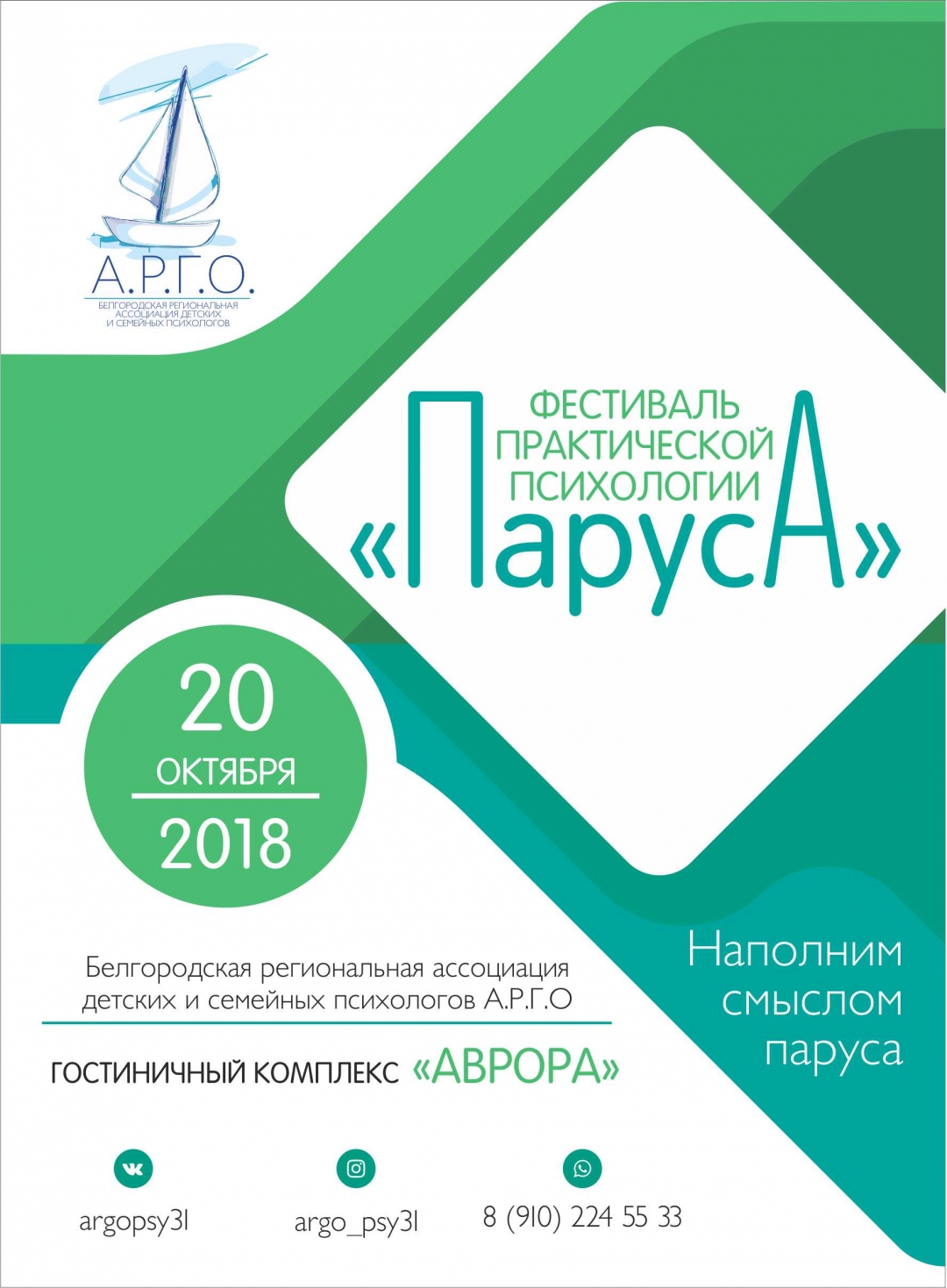 Фестиваль практической психологии «Паруса» состоится 20 октября в гостиничном комплексе «Аврора». Организатор – Белгородская региональная ассоциация детских и семейных психологов «А.Р.Г.О».