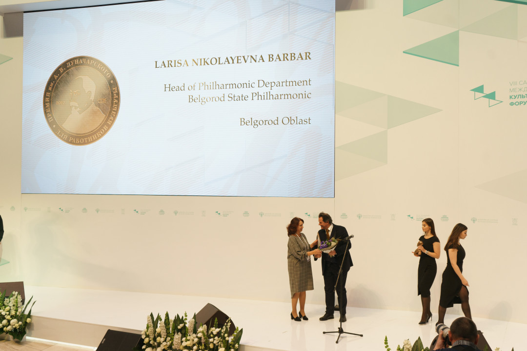 16 ноября прошла церемония вручения премий им. Анатолия Луначарского. Гостей приветствовал Министр культуры Российской Федерации Владимир Мединский. В номинации «Работник концертной организации» награда была присуждена начальнику филармонического отдела Белгородской филармонии Ларисе Барбар.