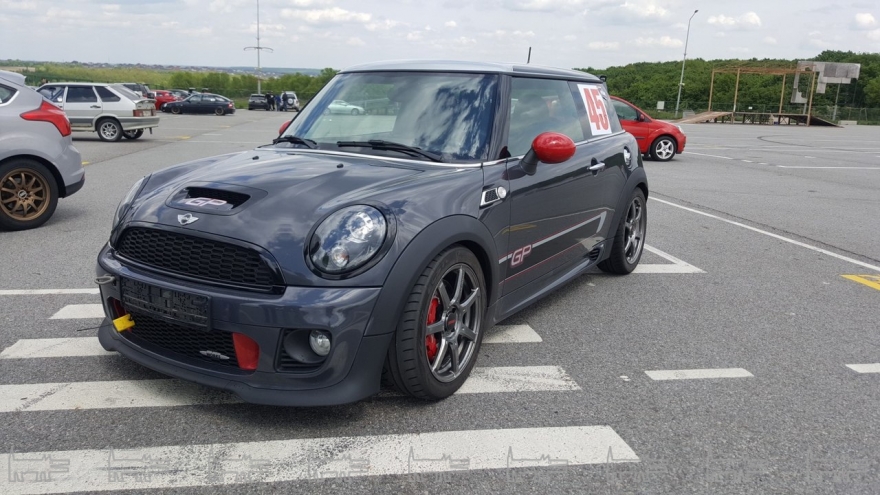 – О, спасибо, приятно, я тоже так считаю, но это заслуга больше не моя, а этого автомобиля, потому что это Mini Cooper GP, один из 2000 штук. Он подготовлен под кольцевые гонки с завода. Имеет двигатель объемом 1,6, поэтому попадает в довольно низкий класс А2. Машина достаточно поворотная и под эту трассу подходит идеально.