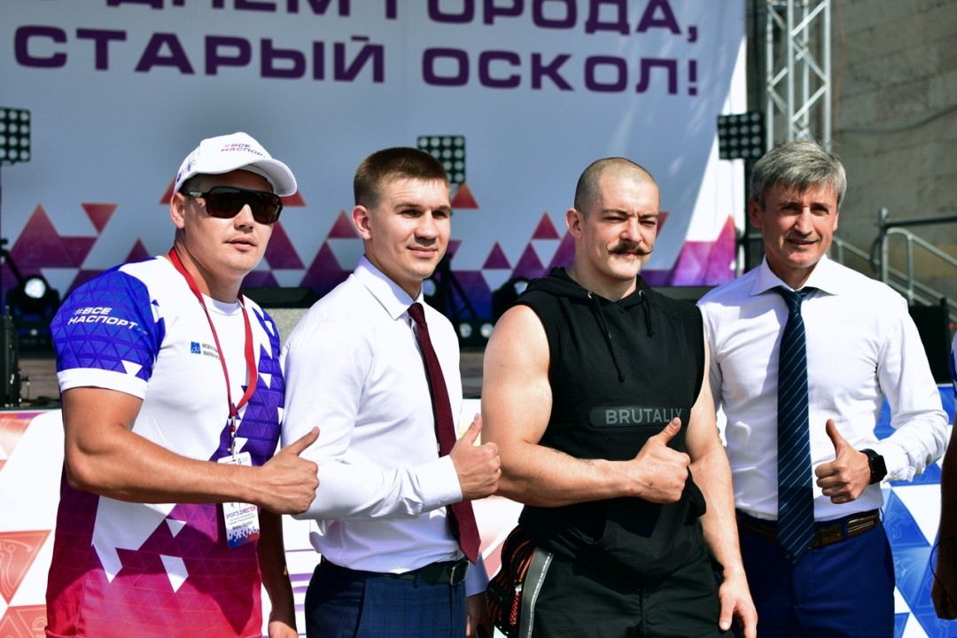 Подарком старооскольцам в день города от благотворительного фонда стали показательные выступления от атлетов, добившихся успехов на мировой арене. Каждый час, с 12:00 до 18:00, на главной сцене у к/т «Быль» проходили показательные выступления.