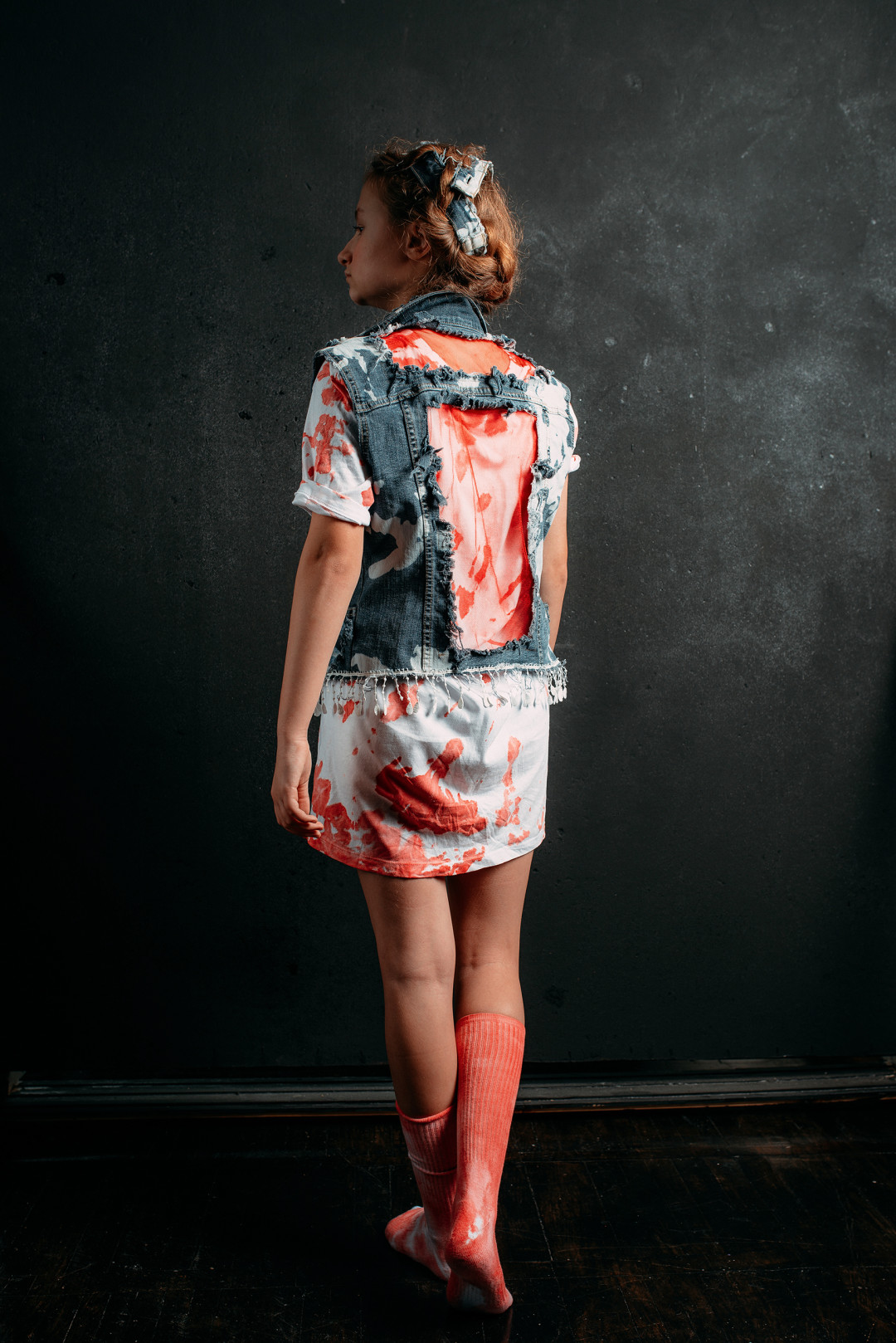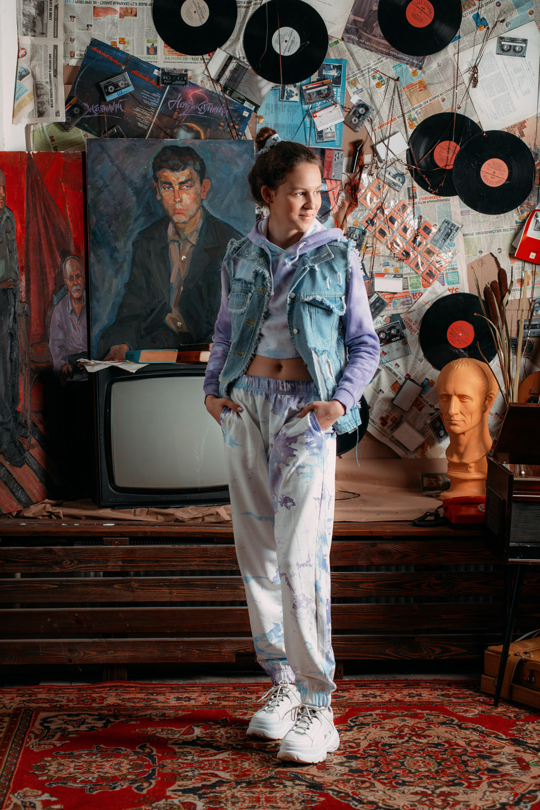 «На создание коллекции меня вдохновила мама — парикмахер-колорист. Её одежда всегда в краске, и я подумала, что это отличная идея разнообразить гардероб».