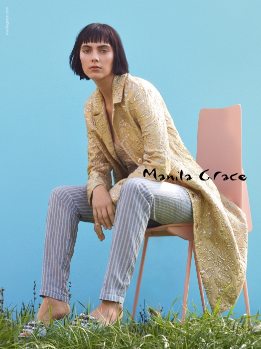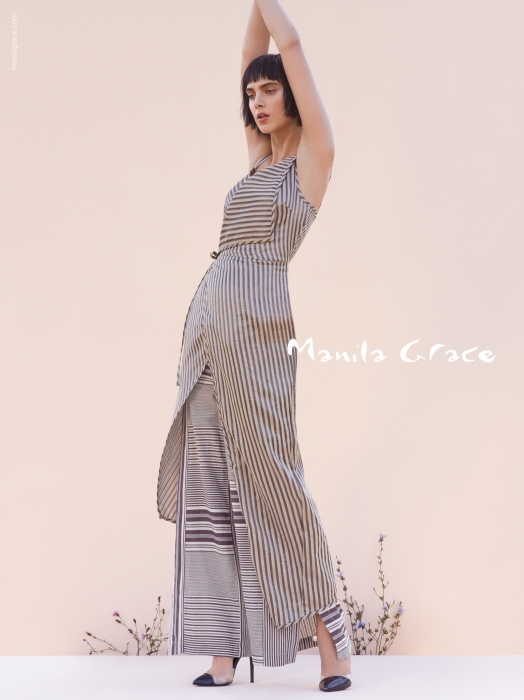 Уникальная, изощренная, динамичная: это женщина от Manila Grace из новой коллекции Весна/Лето 2018. Крой свободный, гламурные детали, естественные тона и золотые штрихи – лишь некоторые из элементов, которые представляют эту коллекцию. Цветочные текстуры чередуются с общими цветами для ультра-женской одежды, которые воплощают полную гармонию весны.