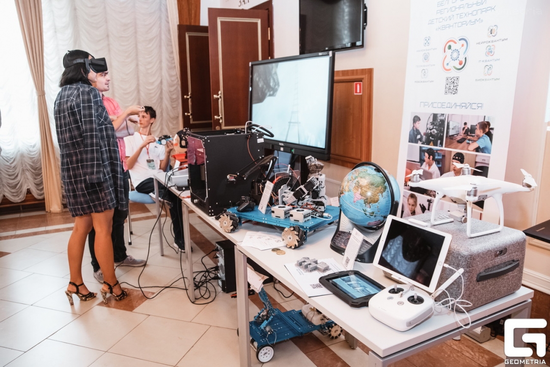 В перерывах между занятиями участники форума участники испытывали шлемы виртуальной реальности на стендах компаний-партнеров, проявляли смекалку в викторинах, примеряли кресло пилота в автомобилях инженерного проекта SHUKHOV RACING TEAM и делали 3D-фото.