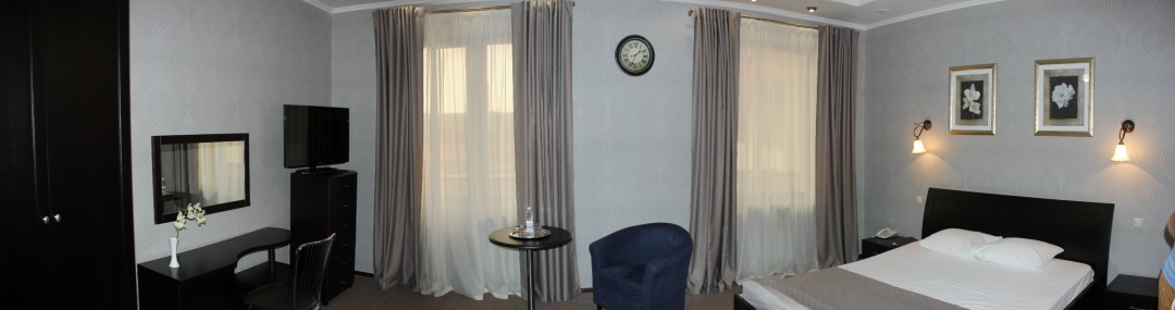 На территории комплекса работает гостиница на 40 1- и 2-местных номеров. Каждый из них оборудован санузлами, современной мебелью, холодильниками, телефонами, системой климат-контроля, Wi-Fi, кабельным телевидением. В номерах есть питьевая вода, гигиенические принадлежности, тапочки, халаты. В стоимость проживания входят завтрак – шведский стол, а также пользование бассейном, спортивным и тренажерным залами.