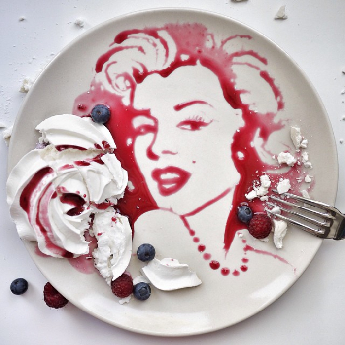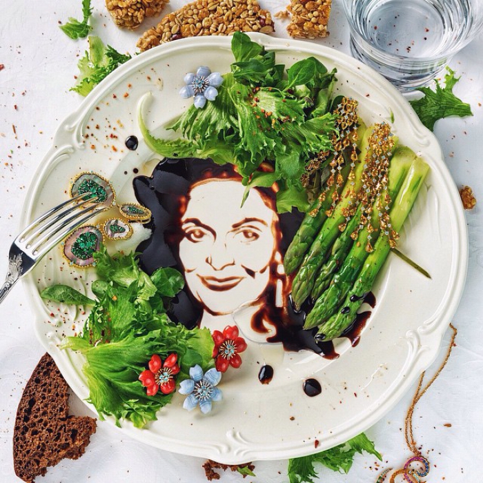 Сюжеты фуд-арта московского стилиста Ксении Березовской предсказуемо связаны с модой: по хэштегу #drawinginmyplates можно найти целую портретную галерею с лицами Коко Шанель, Карла Лагерфельда, Альбера Эльбаза и Джона Гальяно на тарелках.