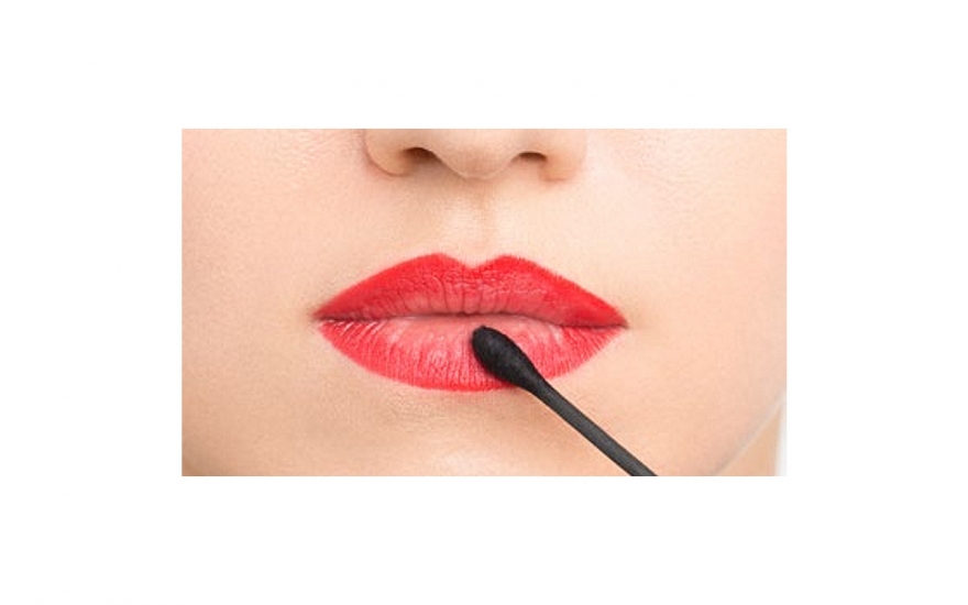 Слегка растушуйте карандаш по центру губ ватной палочкой. Нанесите помаду очень тонким слоем, четко выдерживая контур.