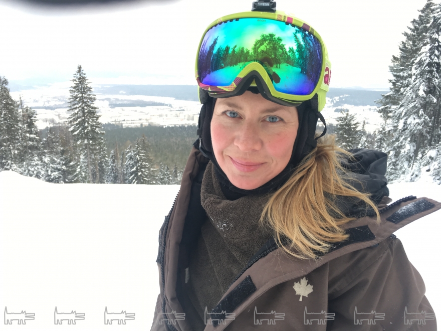 Вчера на съемках. Учила Лену (Олещенко – соведущая проекта «Урал mon Amour» – прим. ред.) кататься на лыжах. Она только на сноуборде умела. Это было так круто! Здесь другой снег, новые ощущения. Здорово!