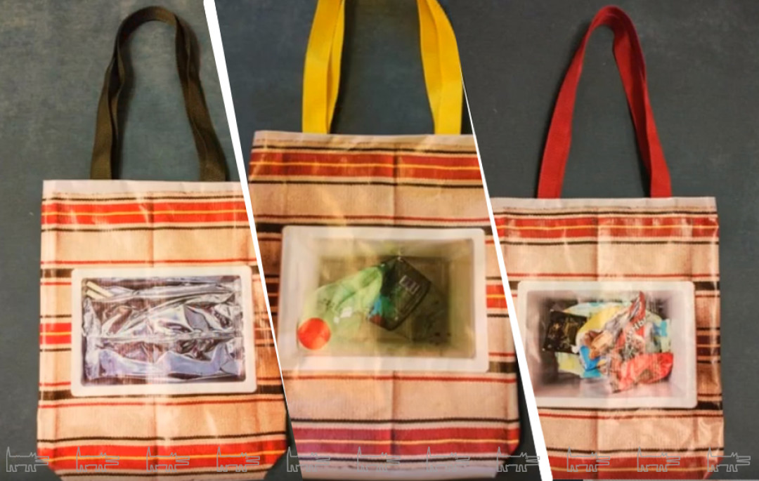Челябинская галерея современного искусства OkNo запустила акцию по вторичной переработке 500 метрового баннера – в модные шоперы и косметички. Баннер из проекта <500>Meters_online художницы Людмилы Калиниченко, инсталлированный прямо в чистом в поле.