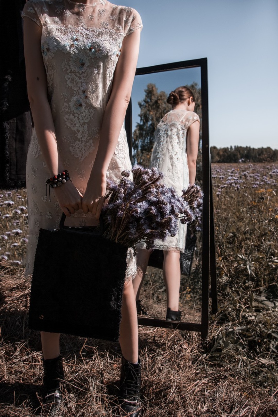 Нужно быть в курсе того, что происходит вокруг. Я наблюдаю за другими дизайнерами, Неделями моды, слежу за актуальными и обсуждаемыми трендами. Мы ведь не можем вариться в собственном соку, это стало бы губительным отрывом от реальности. Но знаете, что я поняла: сто человек посмотрит на один и тот же тренд, и каждый увидит свое. Я возьму то, что мне лично близко, переосмыслю на свой лад, проживу его внутри и сделаю так, как не придумает никто.