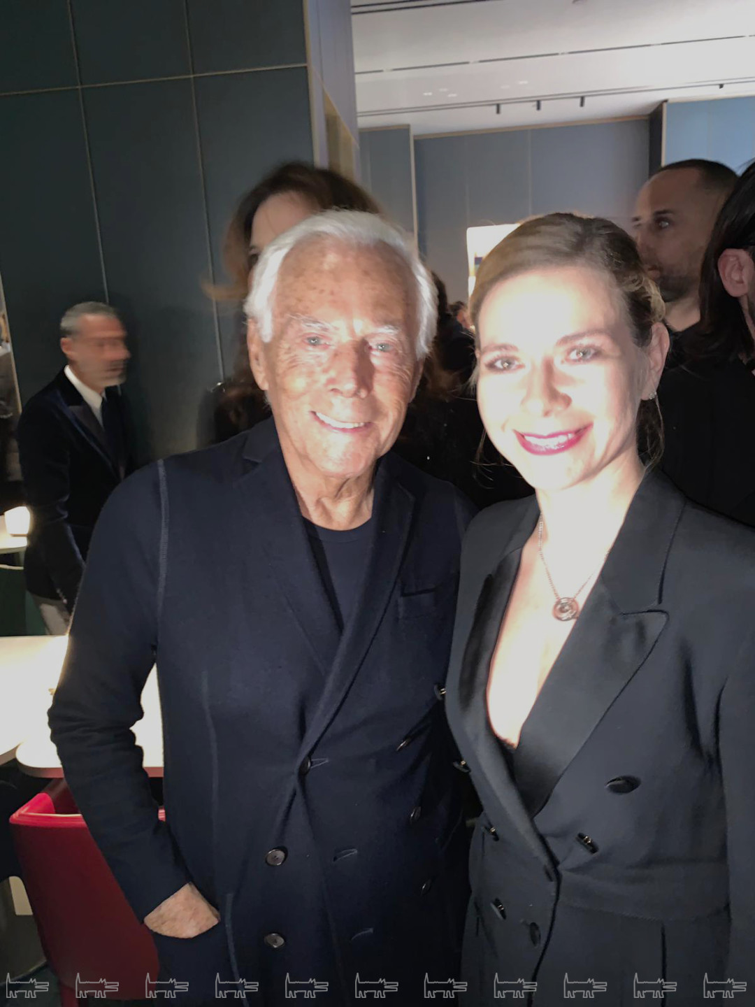 В этот раз мне посчастливилось побывать на открытии обновлённого Emporio Armani Caffè. 21 февраля, в четверг, в самый разгар Недели моды легендарный модный caffe вновь распахнул свои двери. Сразу при входе гостей встречали вкуснейшим игристым Ruinart, сквозь толпу гостей по залу сновали красавцы-официанты с мини-моцареллой, семгой и тарталетками фуагра (Борьба за закуски идет нешуточная, опытные тусовщики разбирают их сразу, каким-то встроенным рентгеном - вмиг определяя самое дорогое и вкусное). Дальше больше: на горячее - ризотто с шафраном и гребешком, а на десерт - шоколадные конфеты собственного производства с логотипом Маэстро. Сам сеньор Армани также присутствовал на празднике. Как всегда в отличной форме и с безупречной осанкой. На after party, однако, не остался, впереди были ещё показы, и нужно было готовиться. Зато гостей пригласили на «продолжение банкета» в клуб Armani Prive, где нас развлекала забавная кавер-группа, стилизованная под 1970-е. И, да, снова было много шампанского. Но долго там я не задержалась, у меня ведь впереди тоже были показы!))