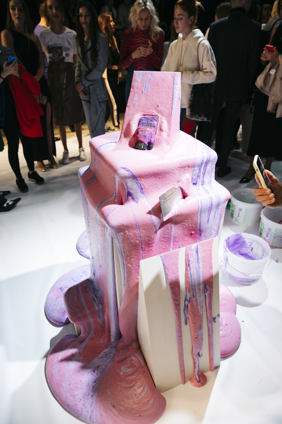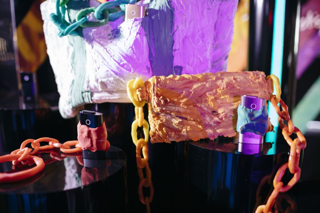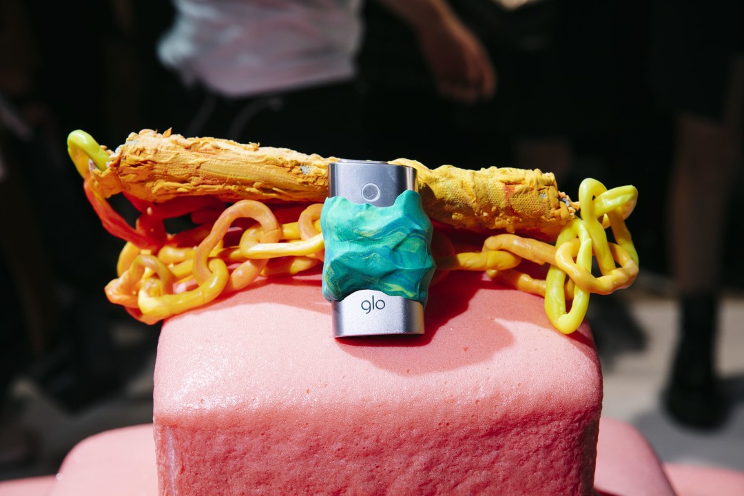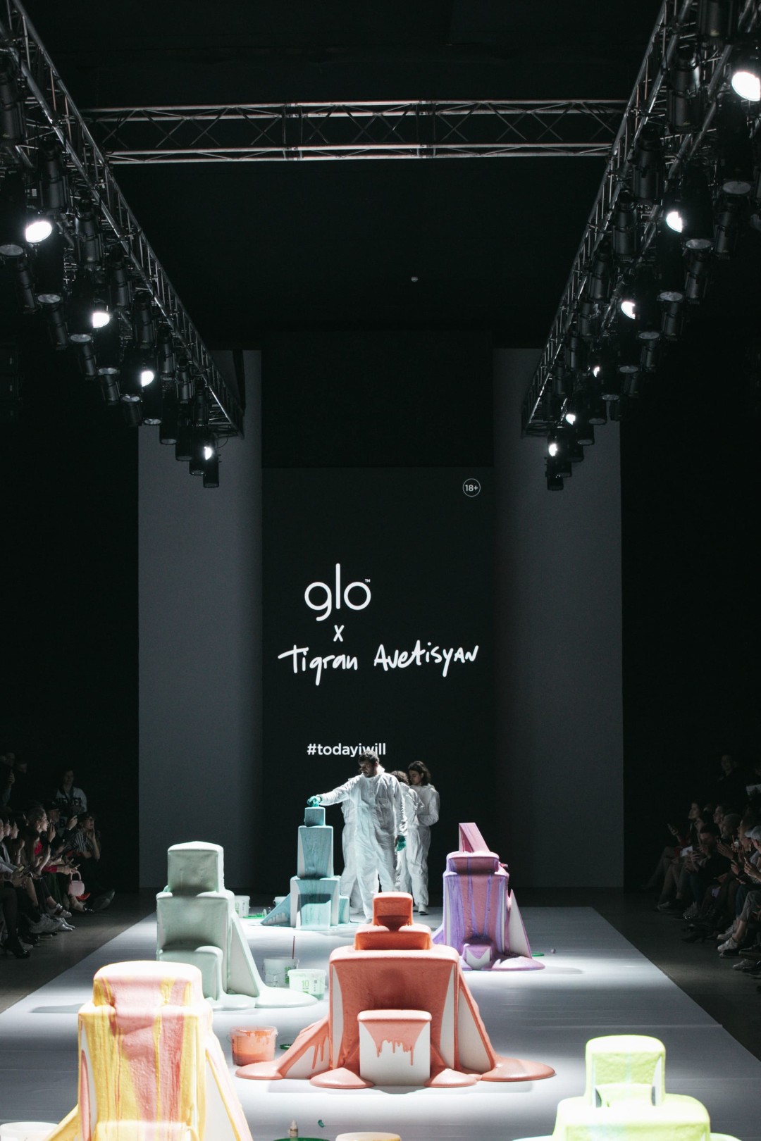 В рамках московской Недели моды прошел совместный перфоманс дизайнера Тиграна Аветисяна и технологии нагревания табака glo. Уроженец Петербурга и выпускник Central Saint-Martins, прошедший стажировки в Acne Studios и Lanvin и получивший стипендию LVMH, расставил на подиуме кубы и залил их эластичной экспансионной пеной в разных оттенках. Особенность пены в том, что она выглядит как густая жидкость, но разбухает 15 раз за 15-20 минут. На такую «живую субстанцию» и были помещены чехлы и сумки с внешним карманом для девайса glo, также разработанные Тиграном Аветисяном.