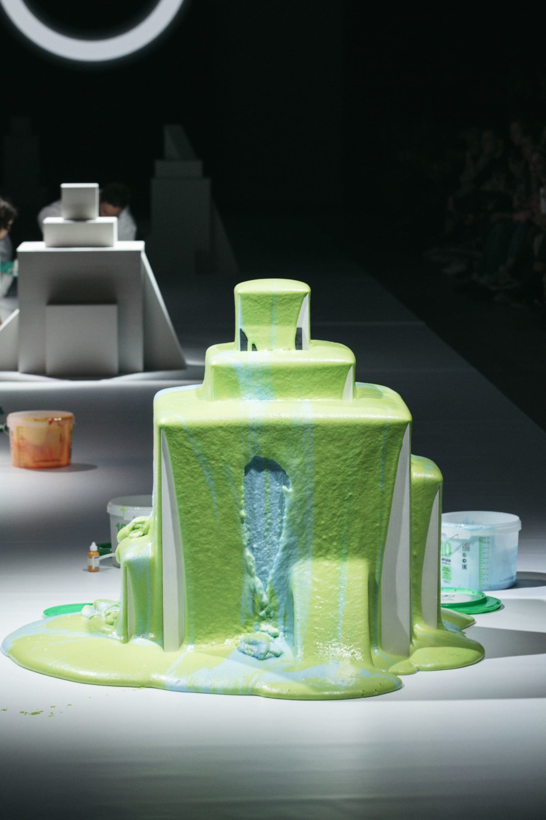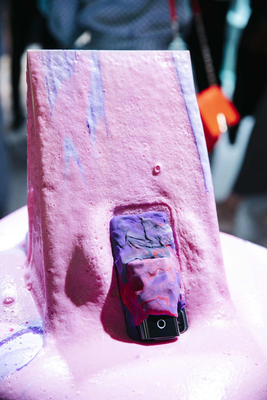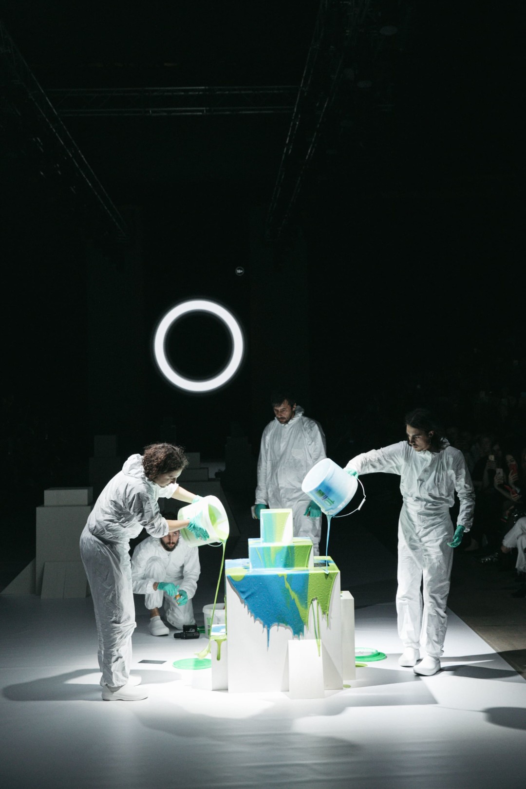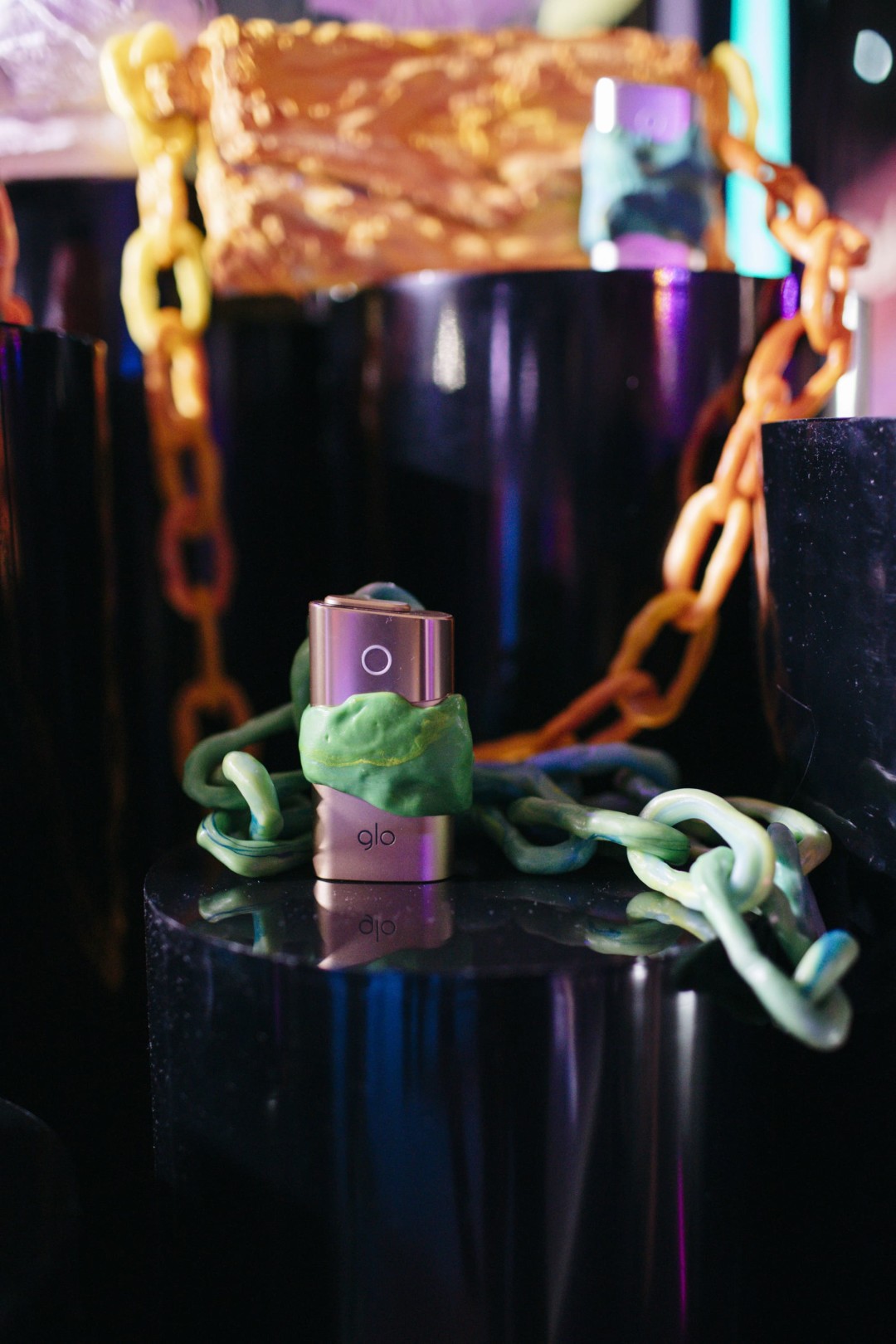 В рамках московской Недели моды прошел совместный перфоманс дизайнера Тиграна Аветисяна и технологии нагревания табака glo. Уроженец Петербурга и выпускник Central Saint-Martins, прошедший стажировки в Acne Studios и Lanvin и получивший стипендию LVMH, расставил на подиуме кубы и залил их эластичной экспансионной пеной в разных оттенках. Особенность пены в том, что она выглядит как густая жидкость, но разбухает 15 раз за 15-20 минут. На такую «живую субстанцию» и были помещены чехлы и сумки с внешним карманом для девайса glo, также разработанные Тиграном Аветисяном.