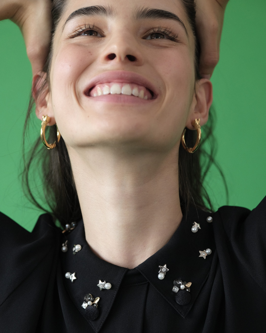 Платья с люрексом и с глиттером – вариант для тех, кто хочет в праздничную ночь быть shine bright like a diamond. Если маленькое черное – нарядный, но классический вариант, то сочно-зеленое может поспорить в своей красоте со всеми новогодними украшениями. Звездой – в прямом смысле слова – вечера поможет стать наряд с небесно-золотой россыпью-вышивкой, а танцевать до утра будет удобно в серебряном комплекте шорты плюс пиджак. Добавьте к последнему красные атласные босоножки и будьте уверены: a little party never killed nobody!