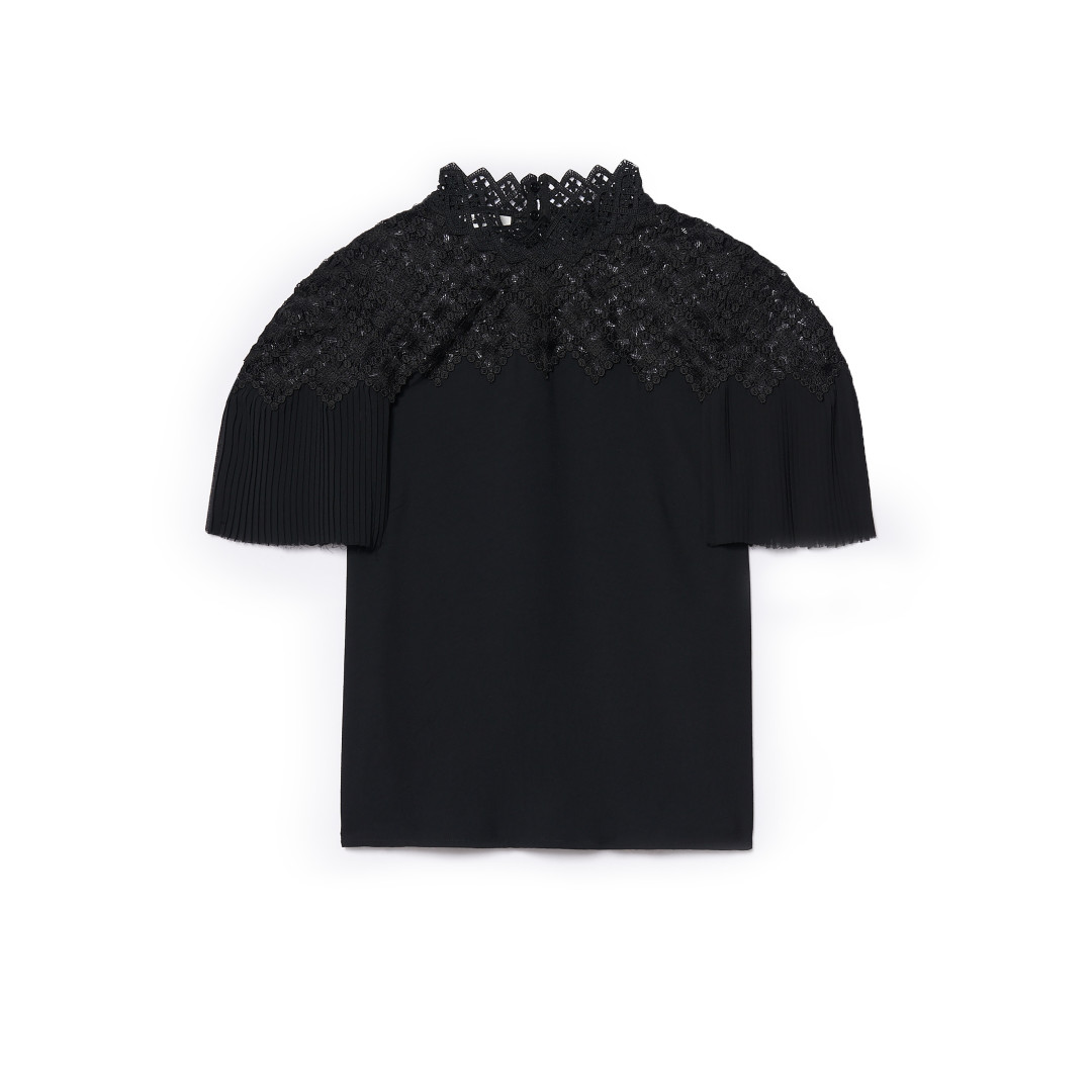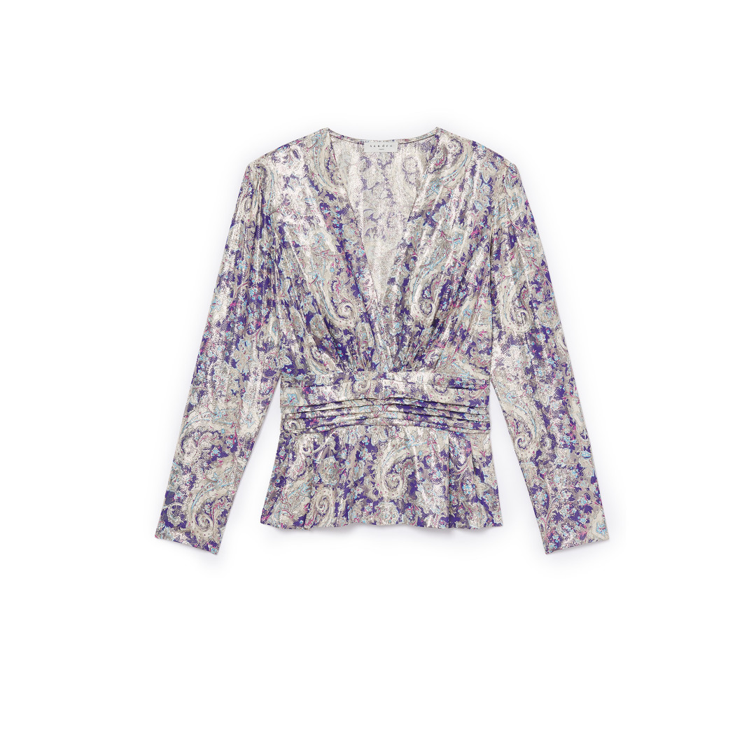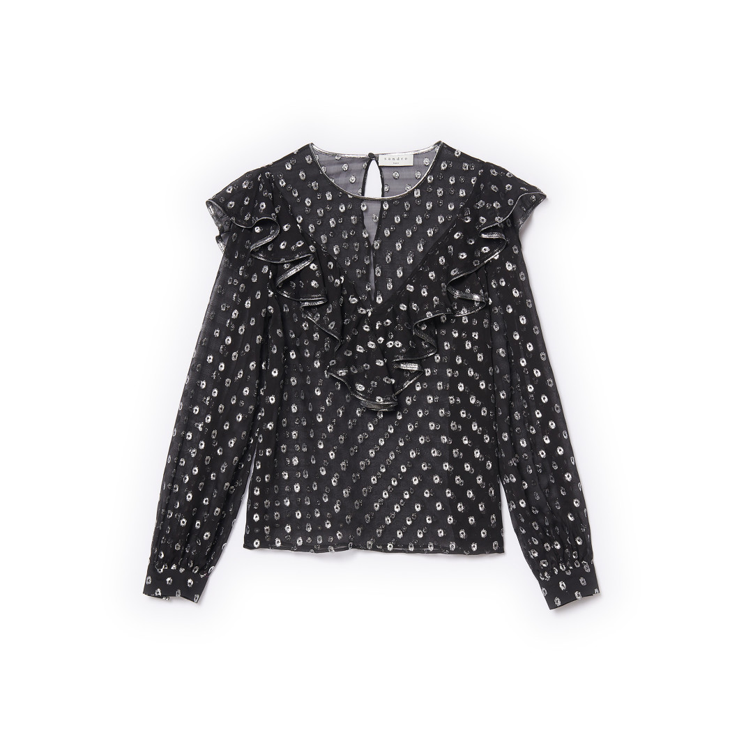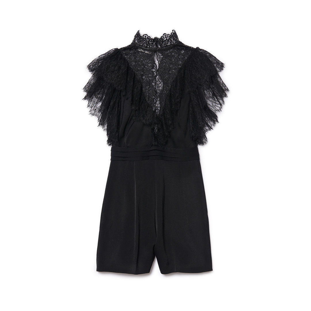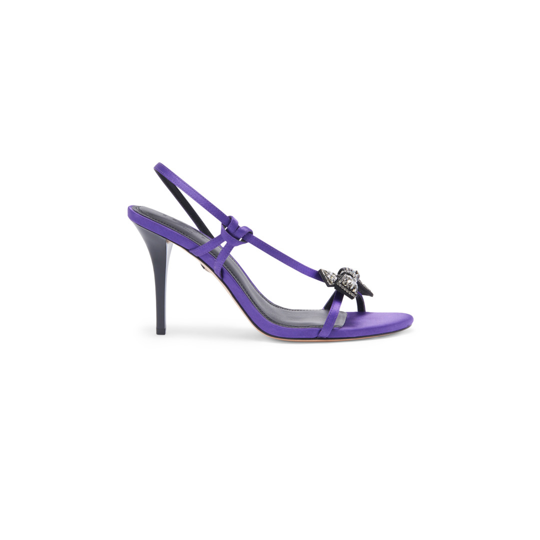 Фиолетовые босоножки и серебрянные туфли – «тот самый» современный вариант для Золушек, которые ходят не только на балы, но и на работу. Отправляясь в офис, собирайте с ними монолук с черным комбинезоном из коллекции Sandro, а вечером дополняйте нарядной рубашкой с сиреневыми кружевами узоров.