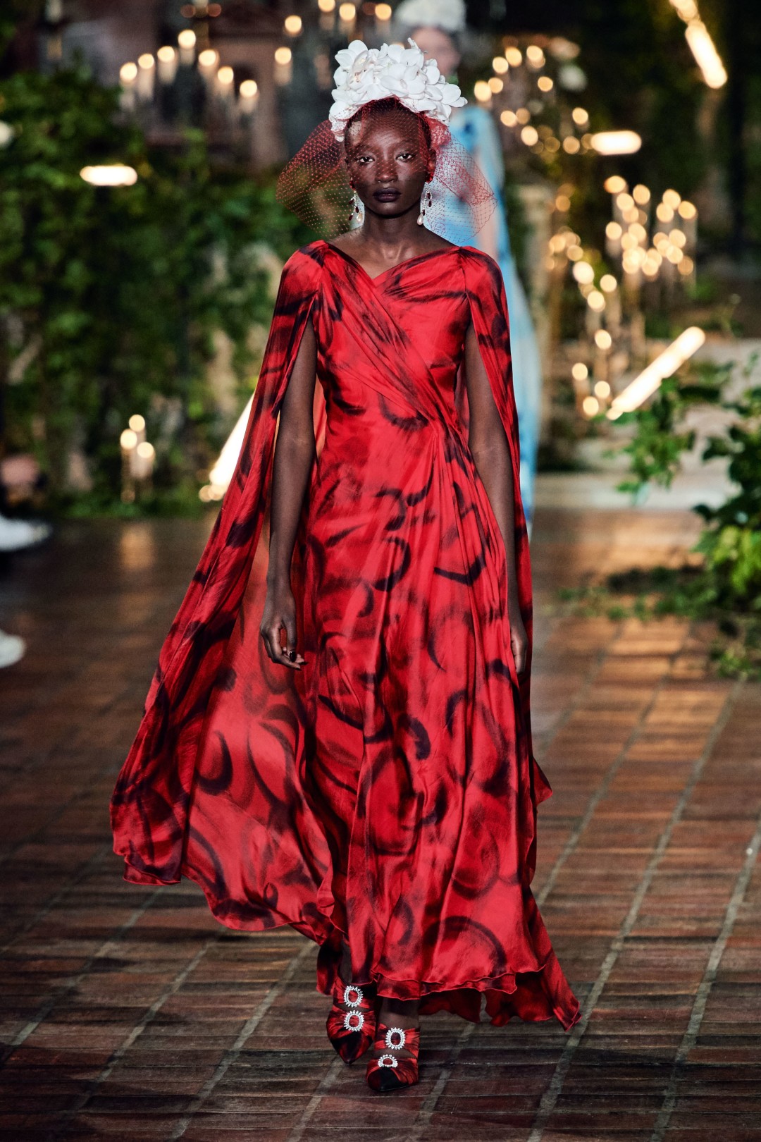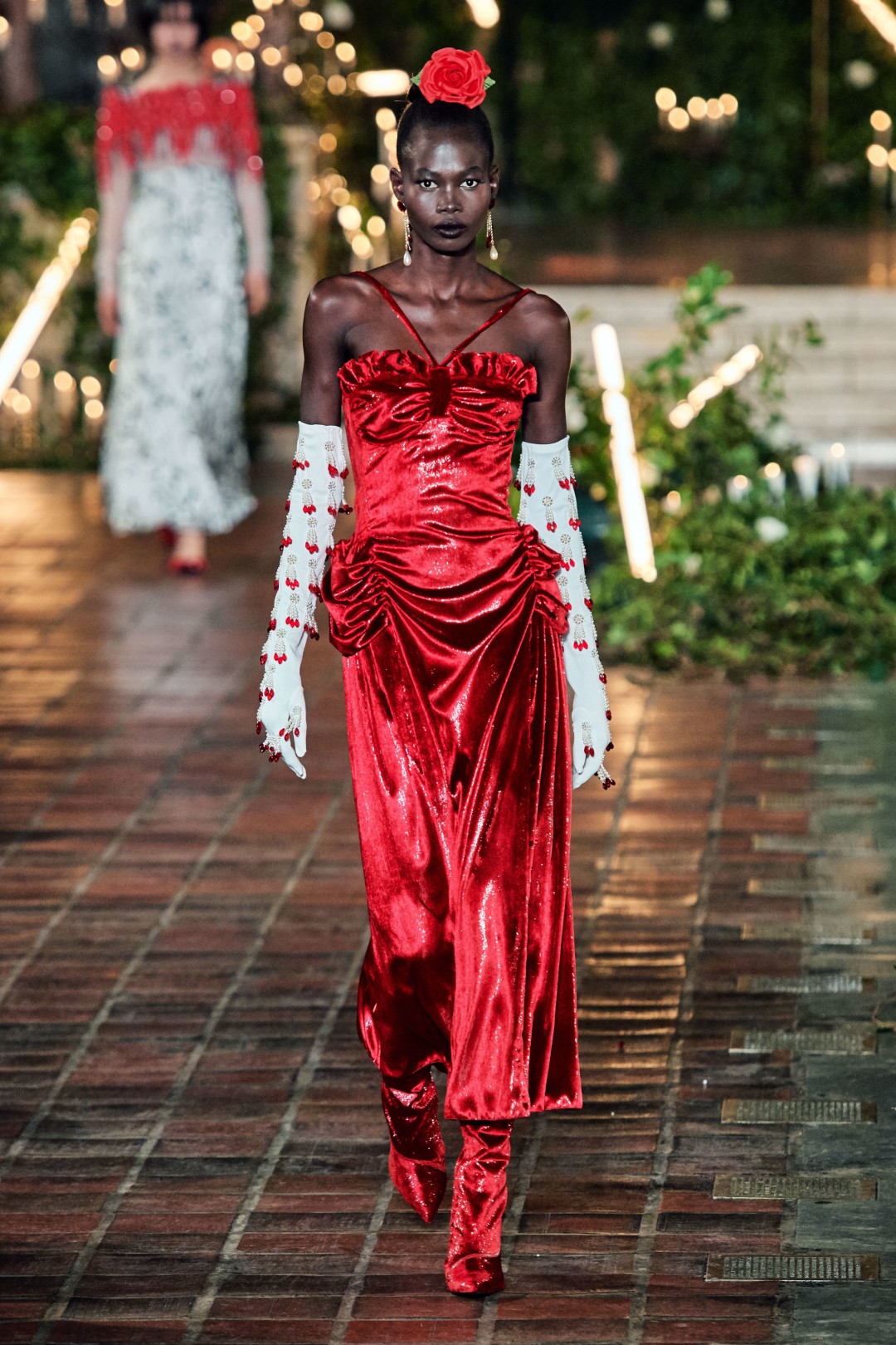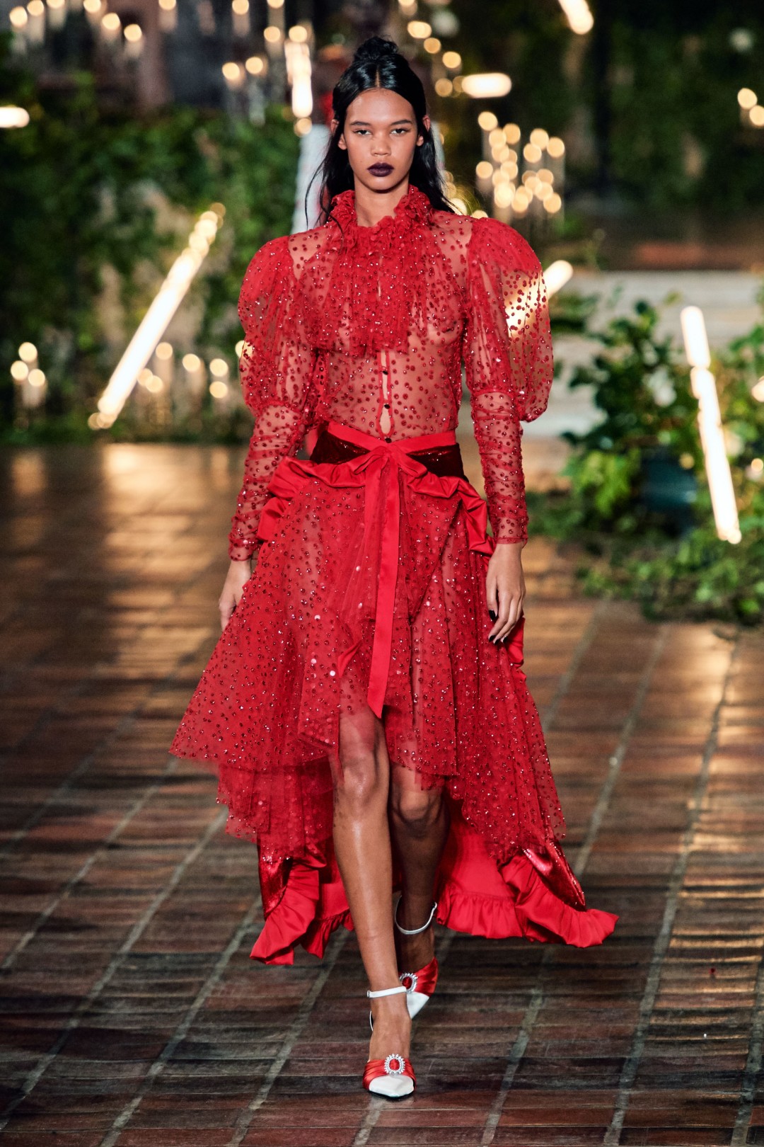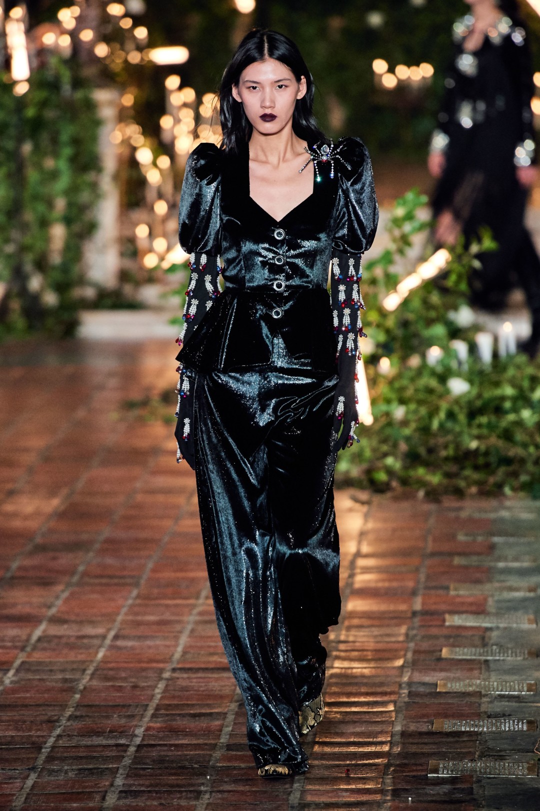 Синонимичные образы моделей завершили вуали, венки, перчатки и макияж с темные губами и выбеленной кожей. Всего дизайнеры показали 51 лук, создав, по их словам, новую женщину Rodarte – яростную и живую.