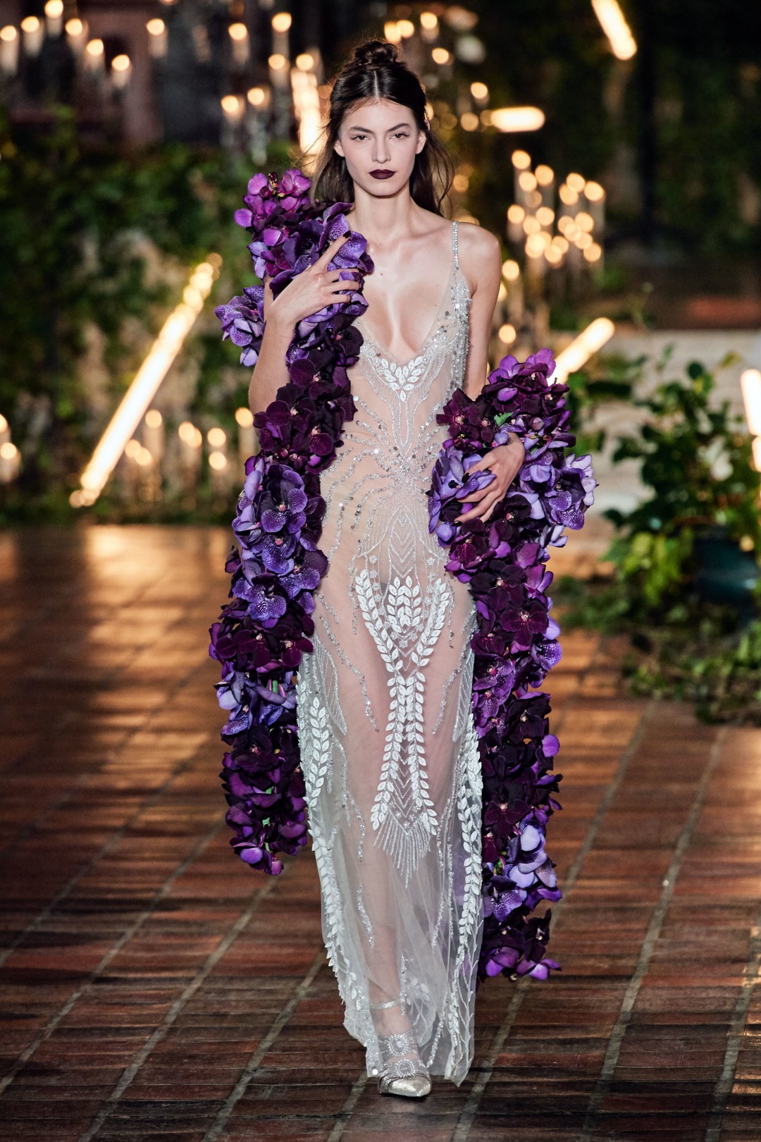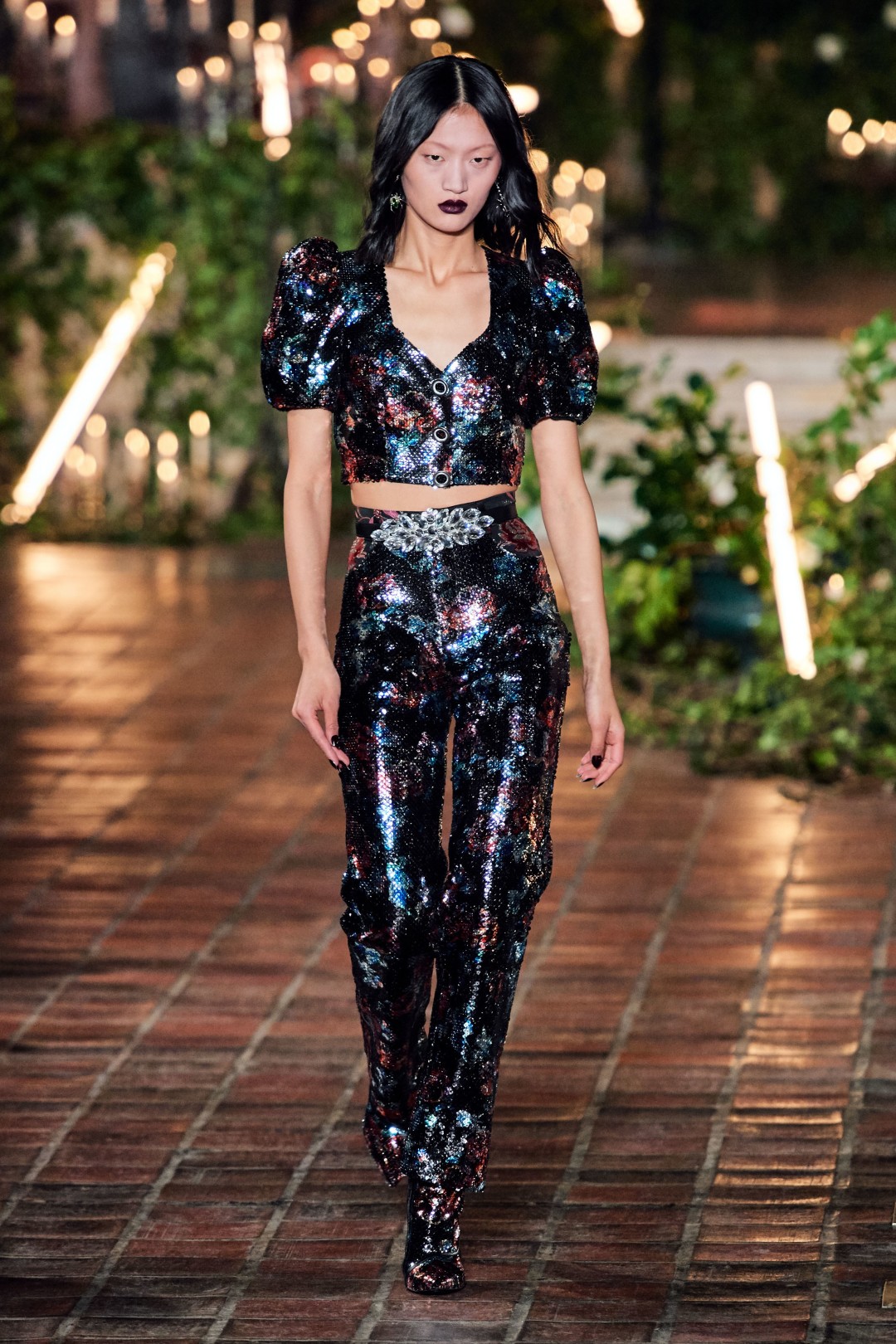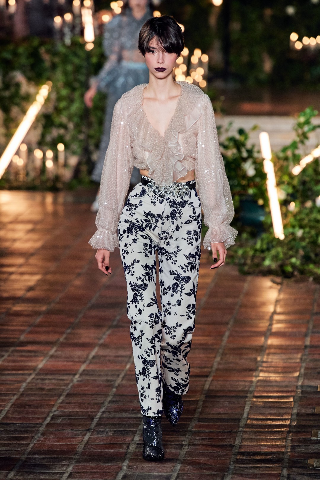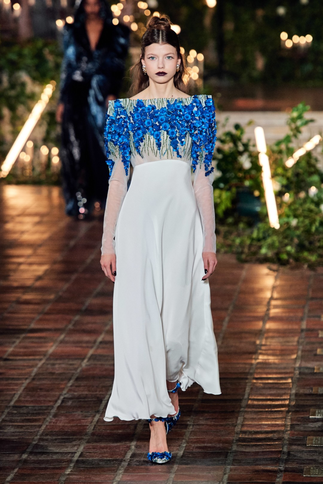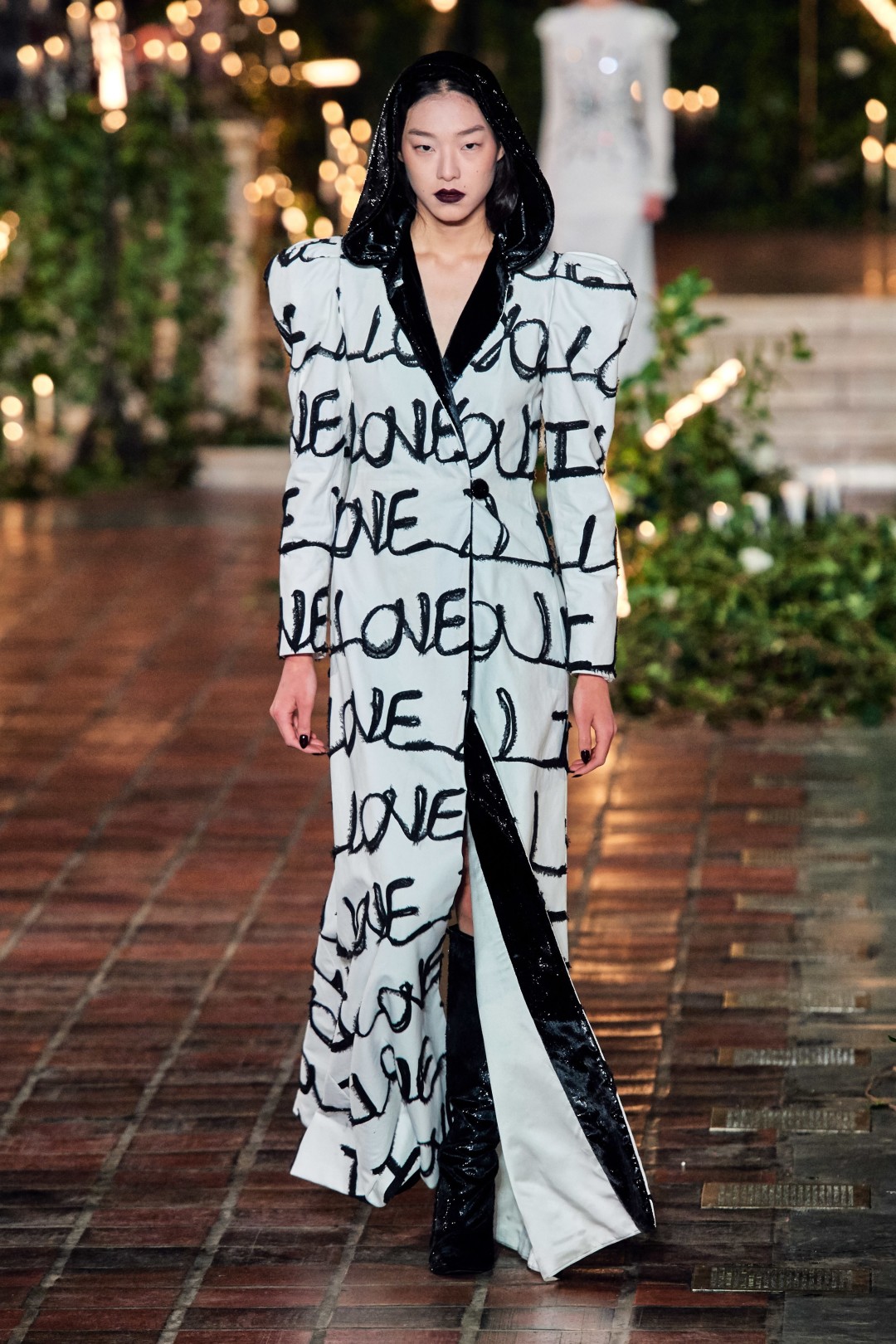 Синонимичные образы моделей завершили вуали, венки, перчатки и макияж с темные губами и выбеленной кожей. Всего дизайнеры показали 51 лук, создав, по их словам, новую женщину Rodarte – яростную и живую.