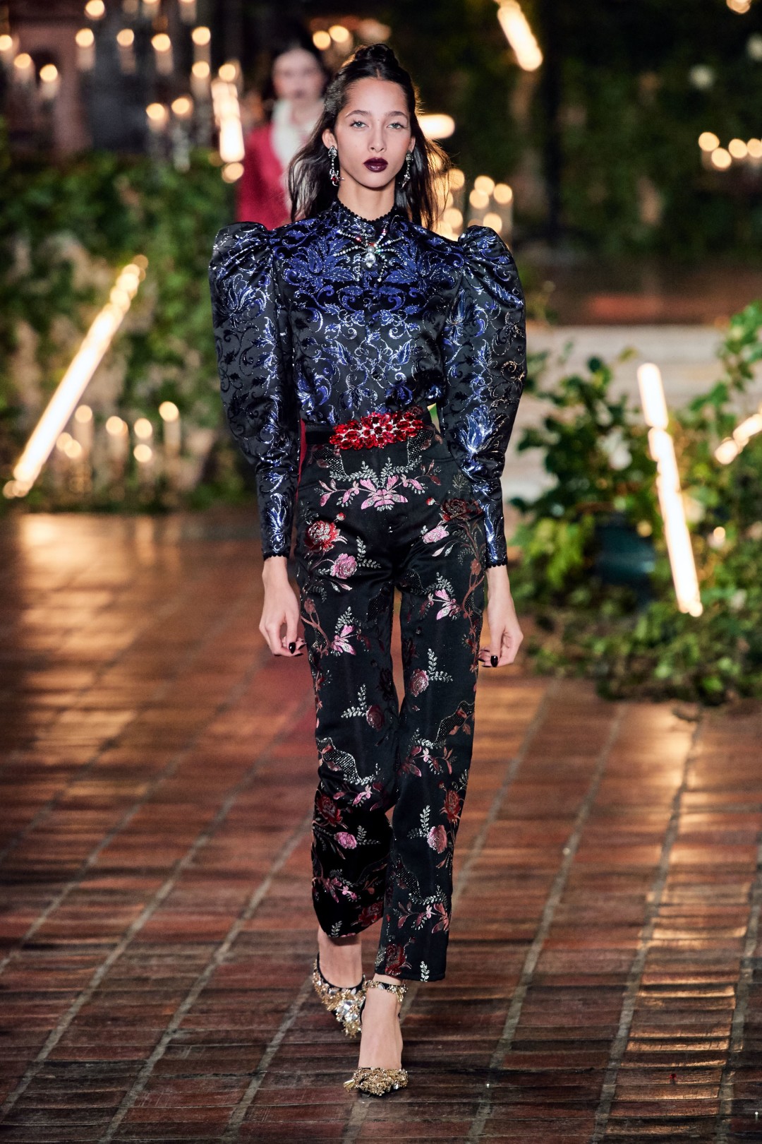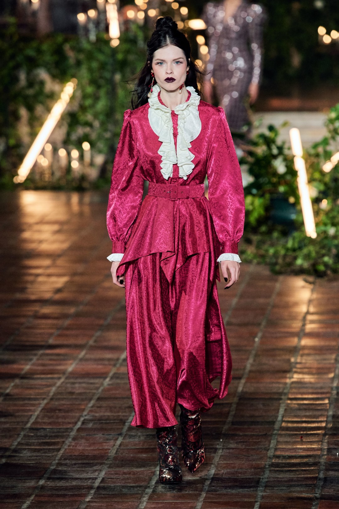 Сестры Кейт и Лора Малливи показали платья в горошек (в таком открывала шоу Белла Хадид), рубашки в викторианском стиле (в них как раз легко представить графа Дракулу) и кейпы, расшитые пайетками. Ключевая деталь коллекции – цветы: они появились на принтах, украсили головные уборы и стали материалом для ярких боа. Паутина и пауки – символы заброшенных замков, где живут вампиры – превратились в броши, серьги и вышивки на платьях, а пояса из крупных страз дополнили наряды.