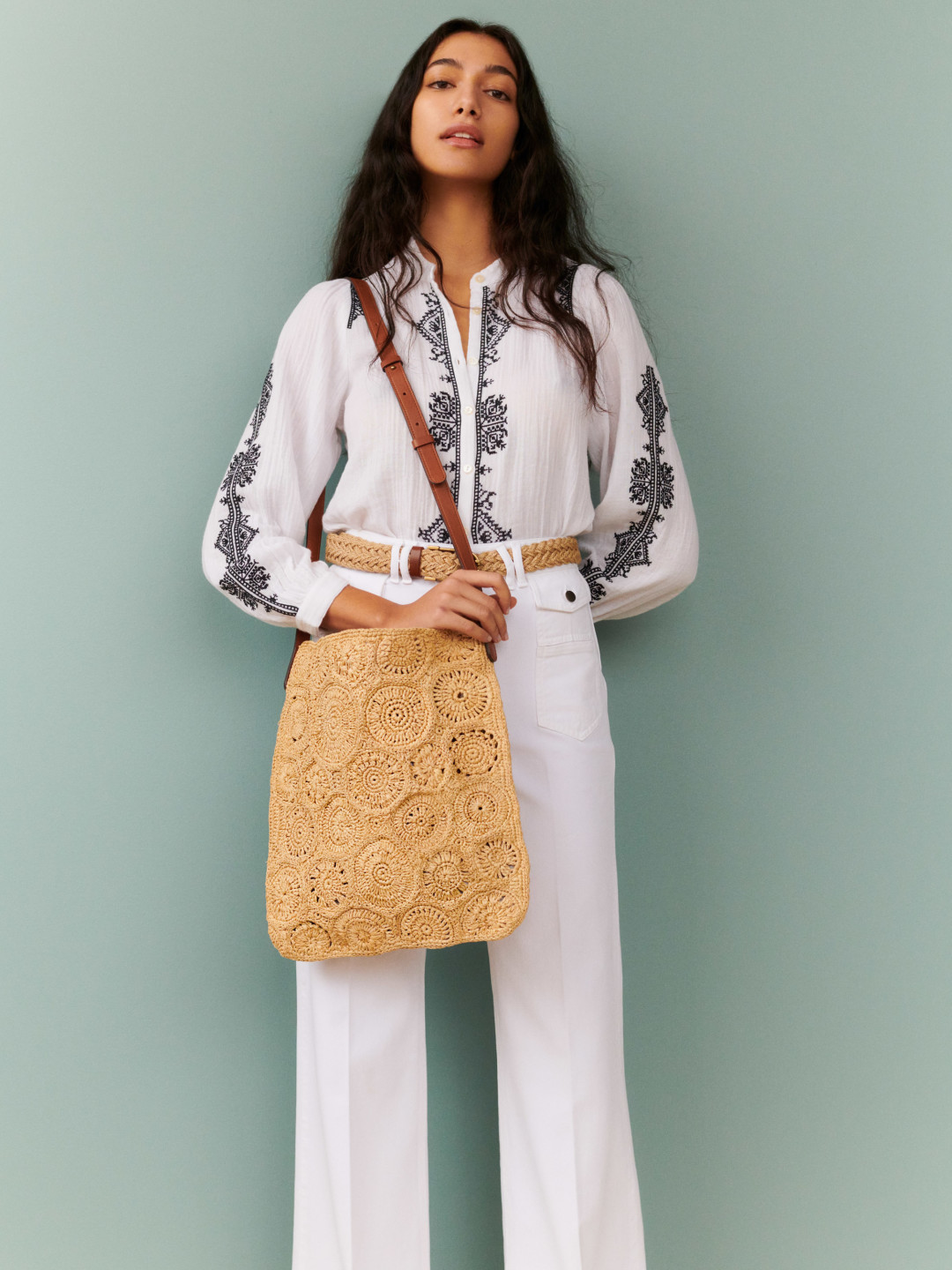 Юбка ниже колена из пэчворк-денима как новый черный этого сезона должна появиться у всех. Для тех, кто боится подпоясывать ее веревкой (модно!) Gerard Darel выпустили плетеные из бичевки пояса – разумная альтернатива смелому тренду. Тренчи весной чередуем с накидками в ленивом бохо-стиле и дополняем вязаными клатчами, а матроски и кожаные сабо – сумкой с бахромой.