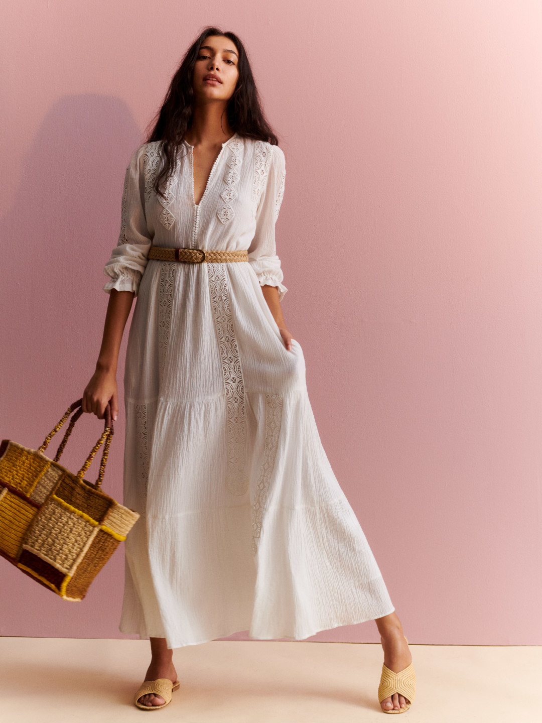 Весенняя коллекция французского бренда Gerard Darel, открытого в 1971 году супругами Жераром и Даниэль Дарель, – повесть о путешествиях, хиппи-тусовках и музыкальных фестивалях. В линейку вошли джинсы-клеш (с принтом тай-дай, пудрово-розовые и в вертикальную полоску!), поэтичные рубашки с кружевом и принтованные панамы (как у Беллы Хадид!).
