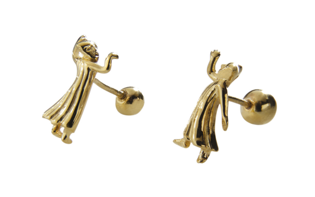 Молодой папа против нового: серьги-гвоздики из стерлингового серебра вручную покрыты чистым золотом, а застежку мексиканский дизайнер сделал целиком из гипоаллергенного сплава 416 пробы.