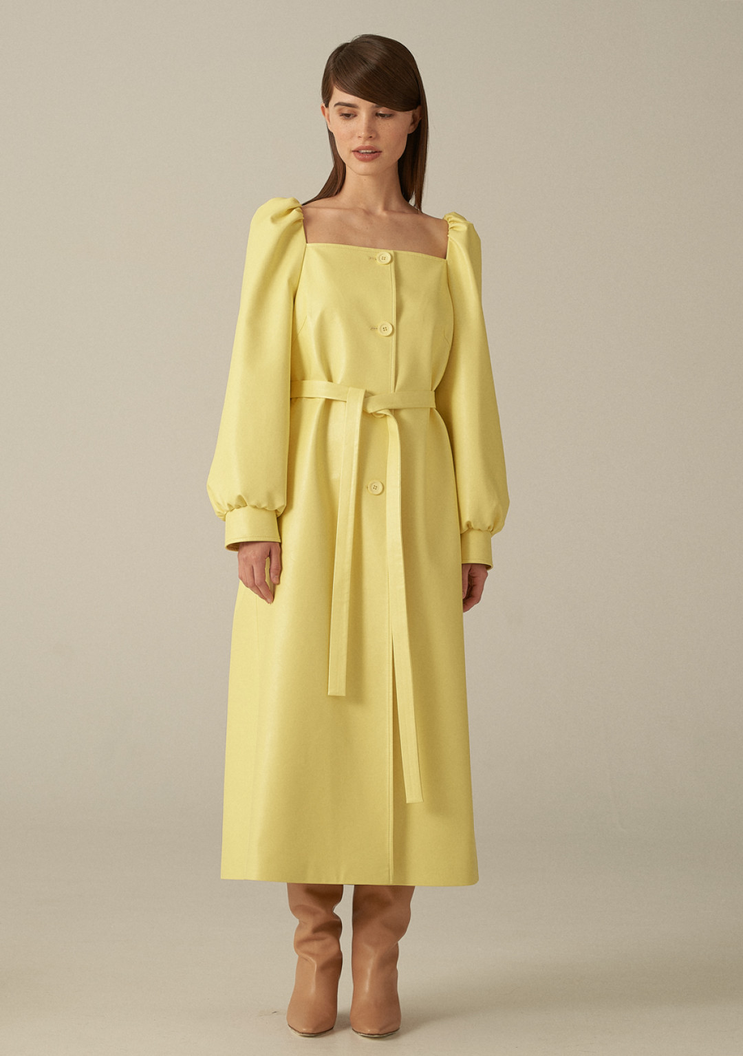 Тренч из эко-кожи лимонного цвета с глубоким декольте, 20 020 рублей