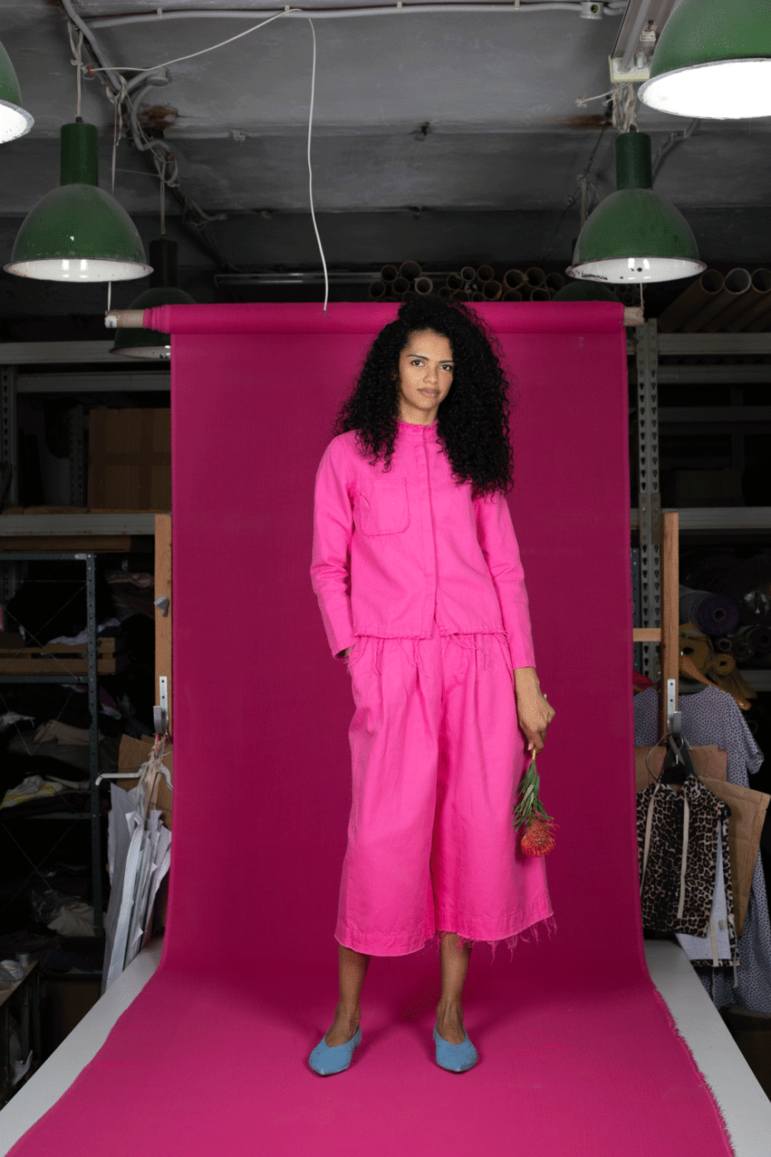 Хлопково-льняной комплект жизнерадостного оттенка фуксия разбавит апатичное настроение этой весны и добавит во всеобщий режим самоизоляции красок. В нем даже рядовой выход в магазин станет праздником и поводом напомнить самому себе, что рано или поздно все вернется на круги своя.