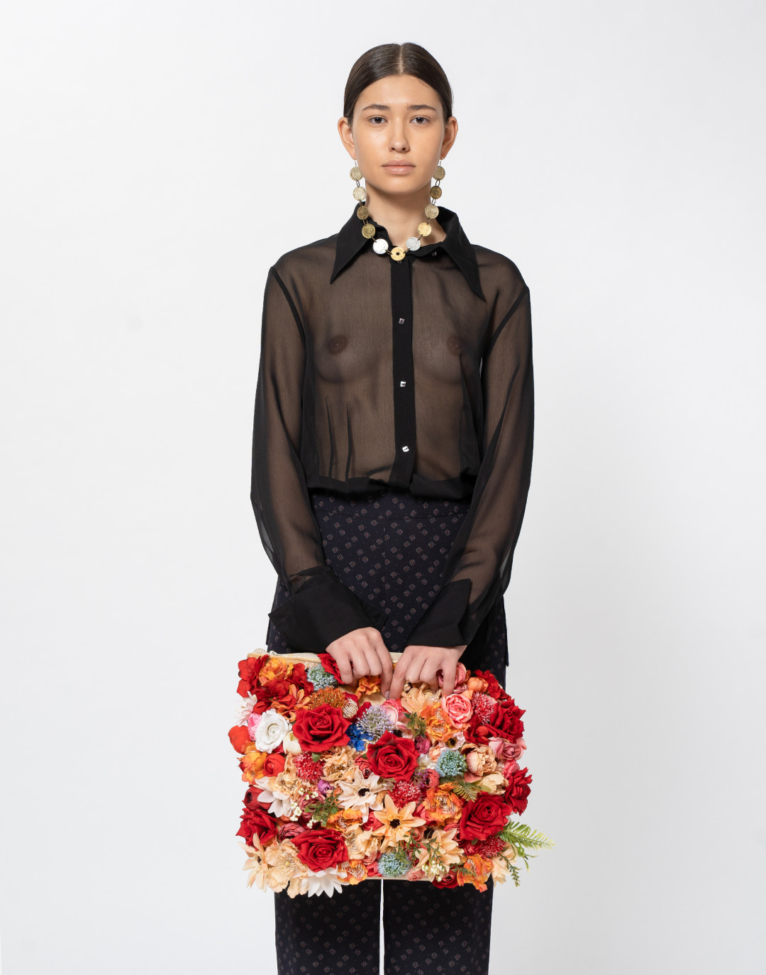 Финалист «Новых имен в моде-2018» и участник проекта «Подиум» Рома Уваров работает в Москве, но как победителя главного фэшн-соревнования нашего журнала мы эгоистично считаем его почти петербургским дизайнером. В новой коллекции (в лукбуке которой модели выгуливают гусей в деревне!) появилась сумка-клатч из мебельного бархата, вручную расшитая винтажными искусственными цветами. Мечта!