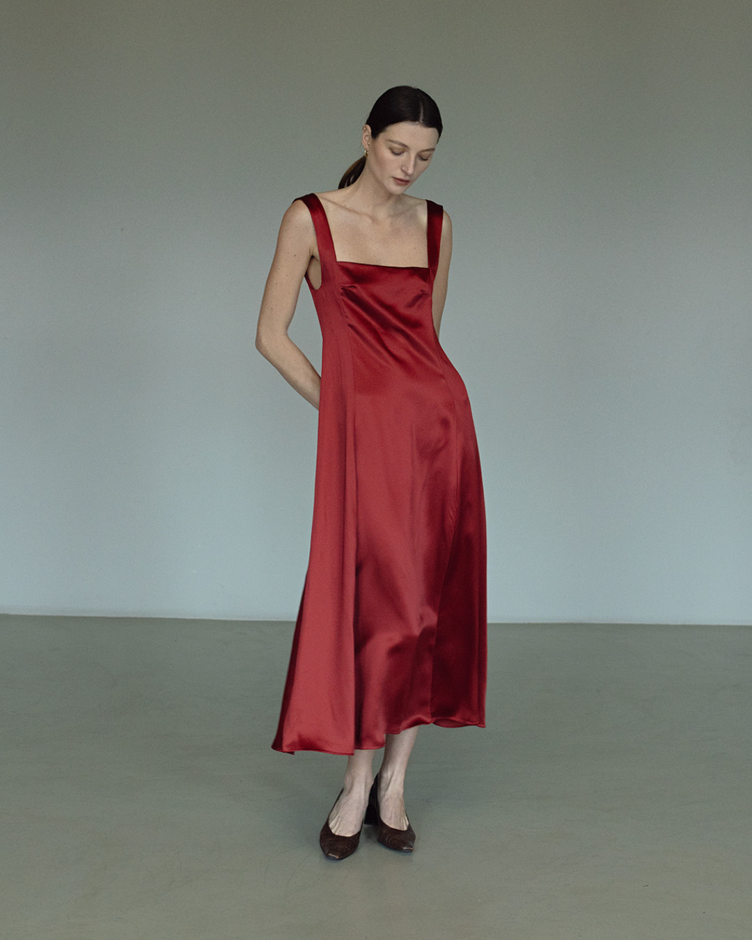 Винно-бордовое платье My812 из вискозы на широких бретелях, словно вышедшее из кадров фильмов Клода Лелуша и Эрика Ромера, станет нежным напоминанием о том, что лето обязательно будет – с прогулками по набережным и закатами в Провансе.