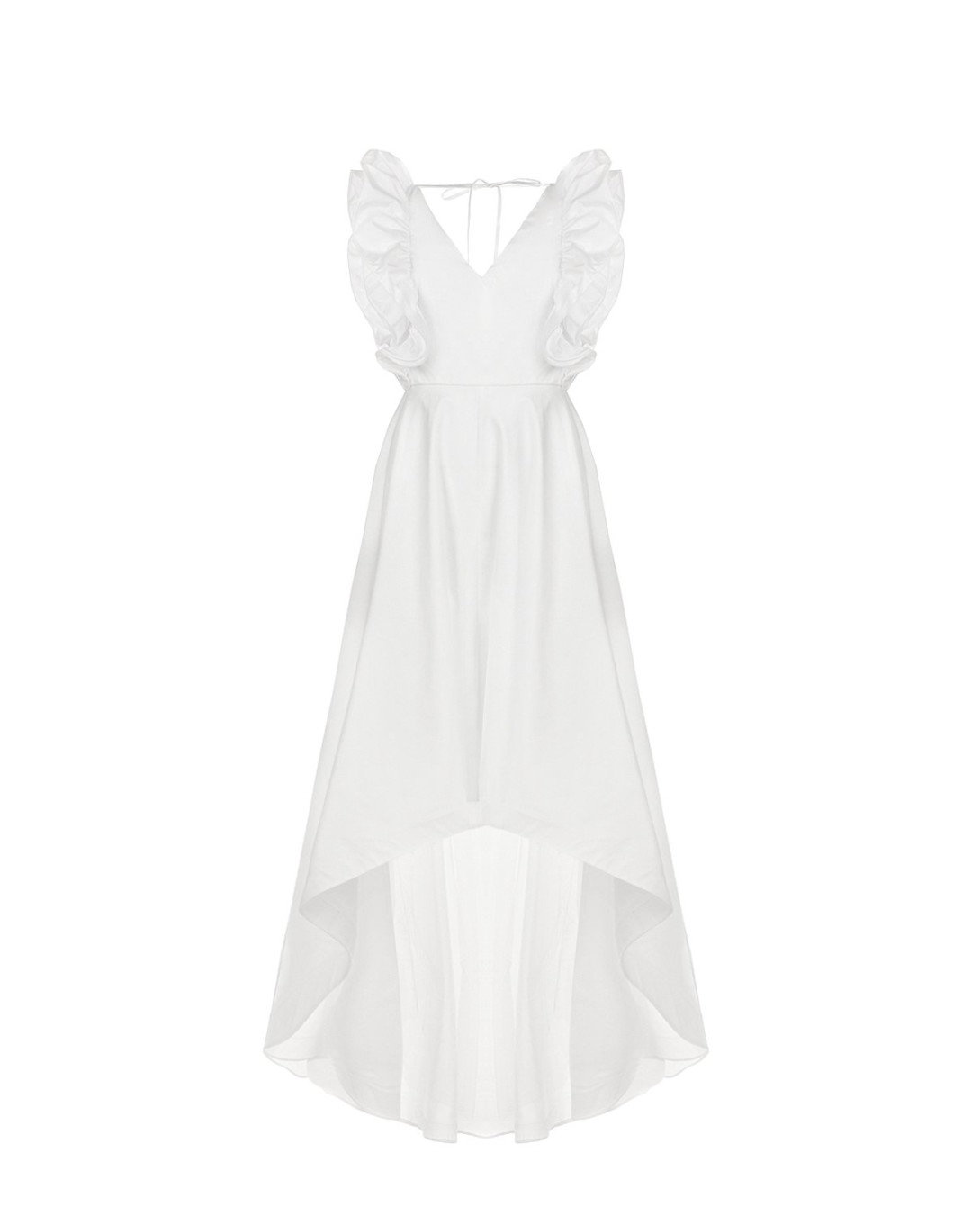 Платья с причудливыми вырезами и многослойными рюшами– одни из самых популярных в этом сезоне: такие можно найти у Filles A Papa, Dolce & Gabbana, Max Mara и Valentino. Не забываем и про мини – шелковые, ярких цветов, с цветочными принтом, кружевом и картинами из пайеток предлагают петербургский бренд My812 и марки Pinko, Elisabetta Franchi, Christopher Kane (отличный вариант для празднования Дня рождения дома и вечеринок по Zoom!).