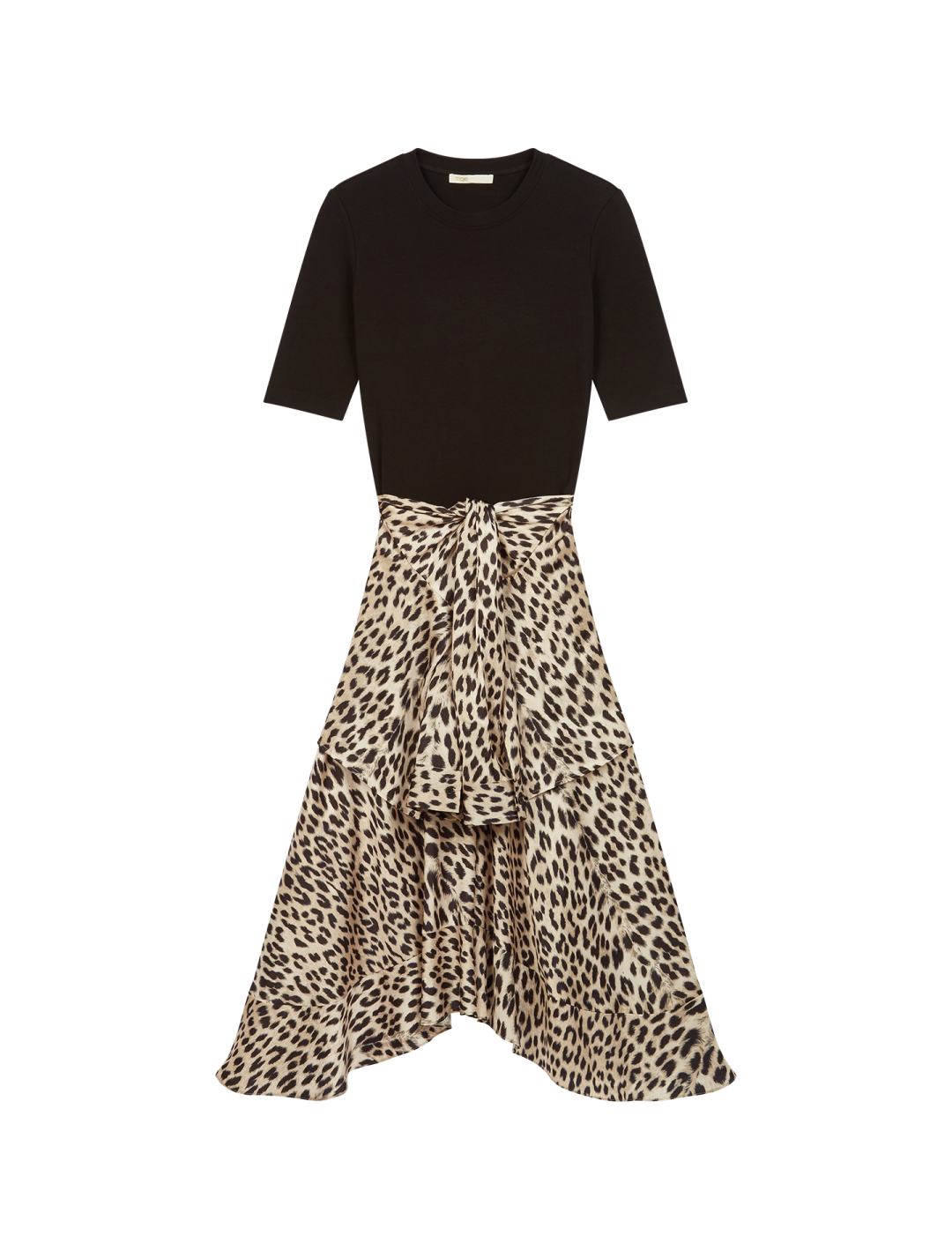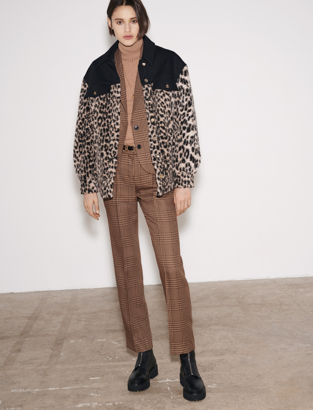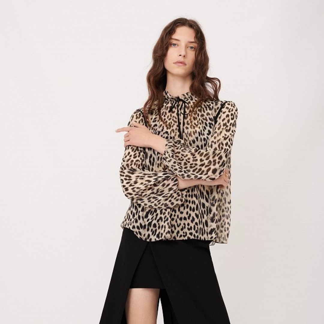 По версии бренда животный леопардовый принт в этом сезоне сравним со второй кожей. Как еще объяснить то, что он украшает блузы, платья и крутки коллекции. Иногда выступает сольно, иногда в тандеме с однотонными черными элементами, но непременно солирует. Сочетать такие вещи Maje советуют с сумками, декорированным бахромой, на длинном ремне или цепочке.