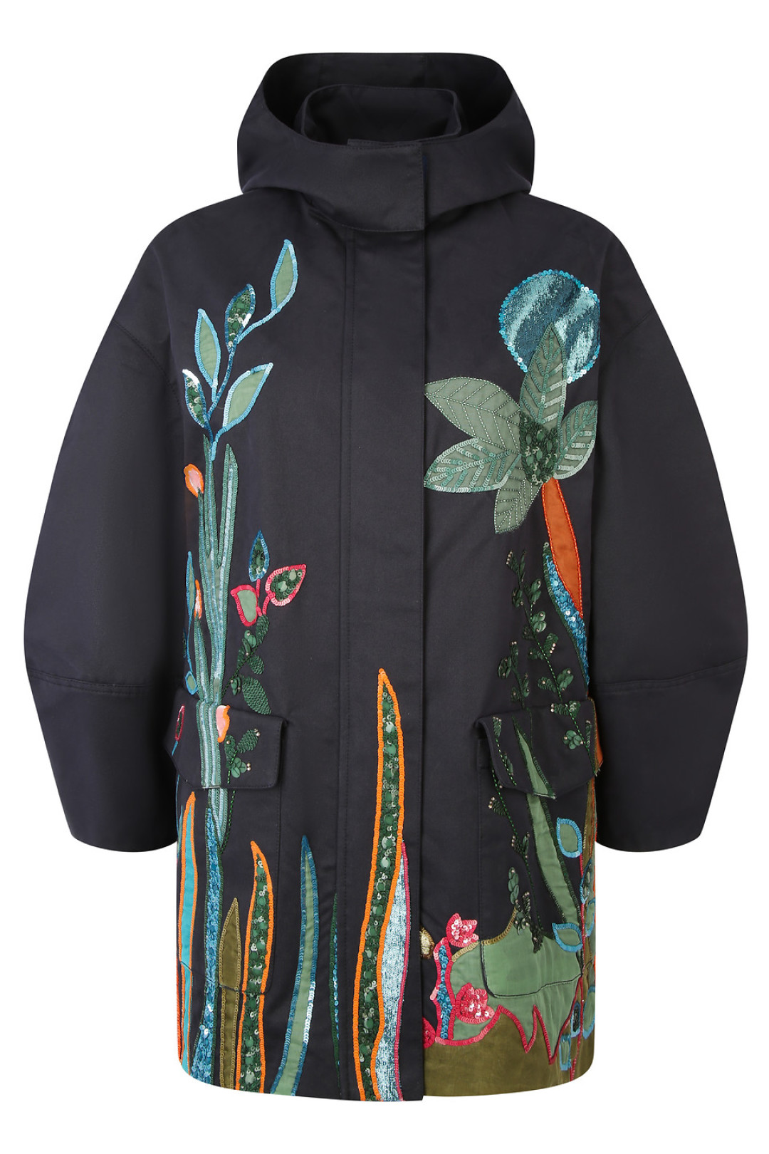Соответствовать антуражу флоры и фауны, а также усилить свое единство с природой помогут образы, в которых есть вещи с анималистичными принятом или вышивкой. На камуфляж для пряток в кустах предложенные нами варианты не тянут, но кто будет прятаться в таких-то куртках и тренче!