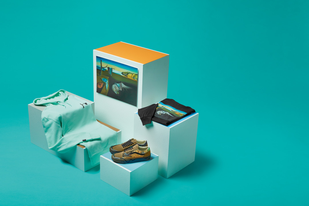 Картина «Постоянство памяти» 1931 года сюрреалиста Дали украшает кеды Vans Old Skool Twist с контрастной черной линией, напоминающей штрих кисти, на яркой подошве, а также худи и лонгслив. Среди работ Кандинского для коллекции была выбрана картина «Оранжевое» времен учебы художника в немецкой школе искусства и дизайна Bauhaus — силуэт Classic Slip-On посвящен исследованию абстракции и знаков, этот же мотив — на футболке с круглым вырезом и кепке. А на рюкзаке, флисовом худи и кепке цикл «Кувшинки» лидера импрессионистов Клода Моне, над которым он работал последние годы жизни в Живерни.