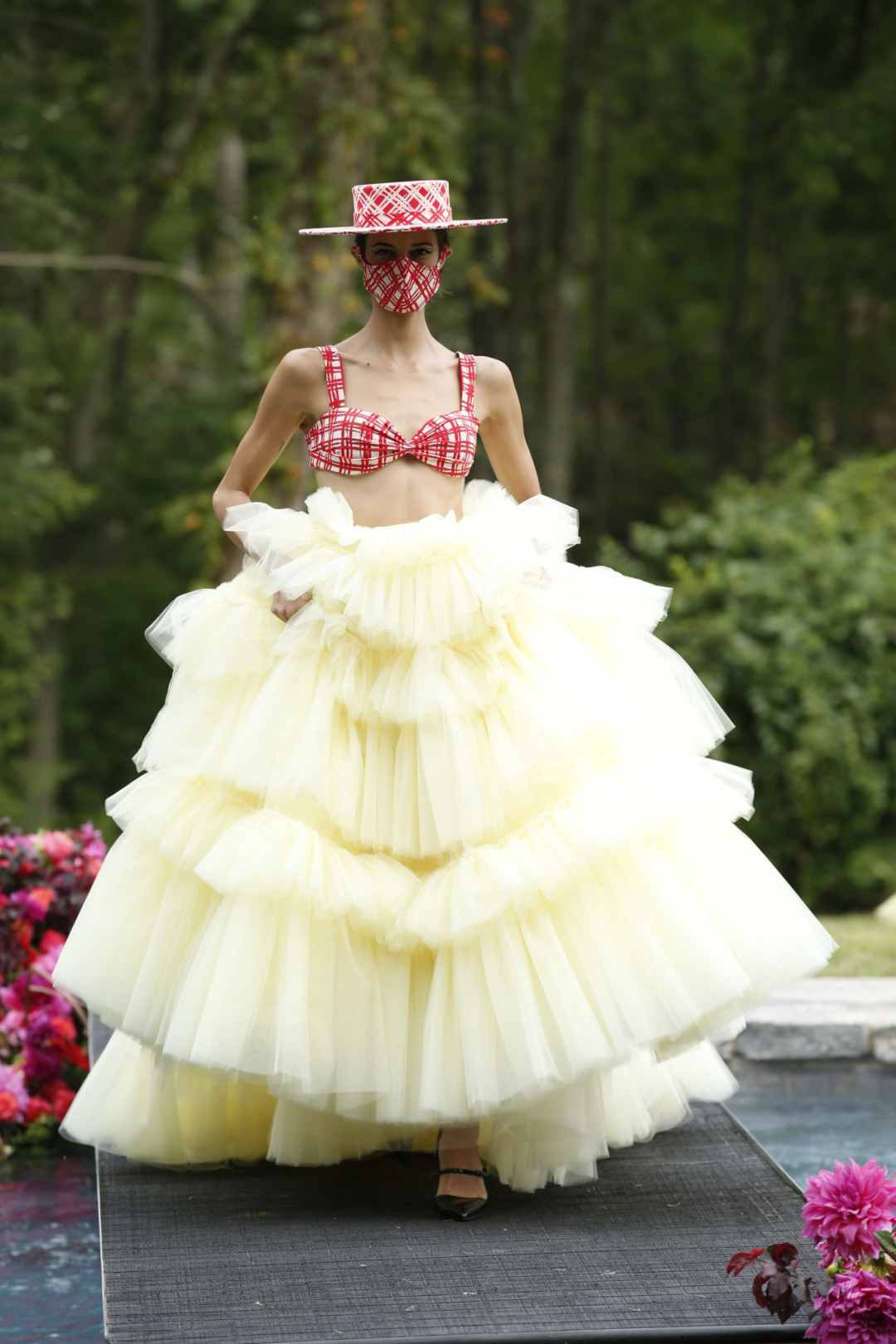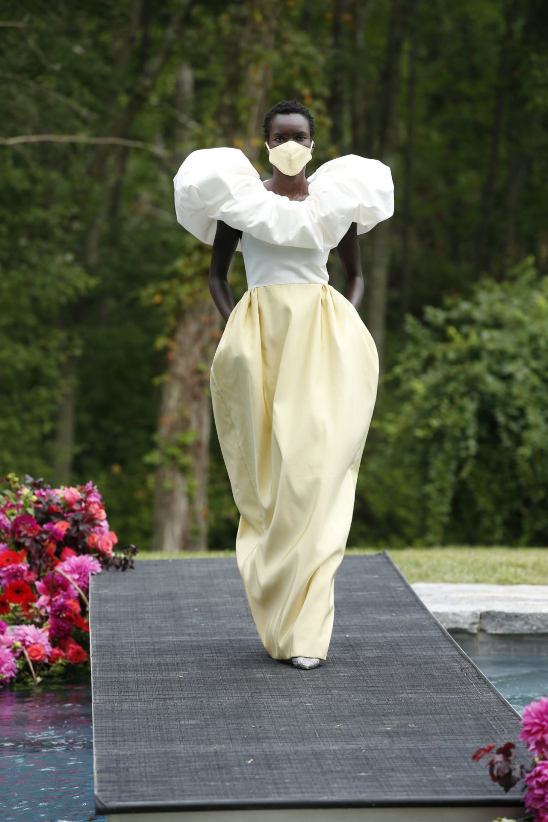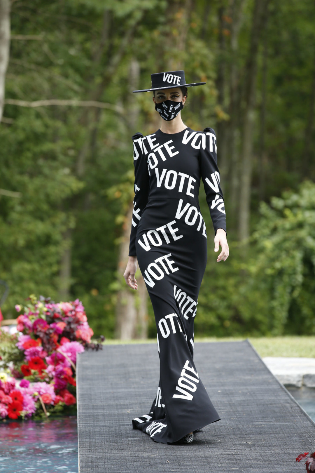 Шоу Christian Siriano стало завершающим на Неделе моды в Нью-Йорке. Основатель и креативный директор бренда Кристиан Сириано представил костюмы, прозрачные платья, платья с воланами и рукавами-фонариками, корсеты, многослойные юбки и отдельные образы с надписью «VOTE». Дополнением весенне-летней коллекции Christian Siriano стали шляпы, перчатки и защитные маски.