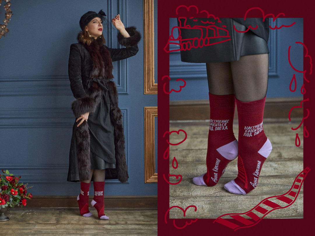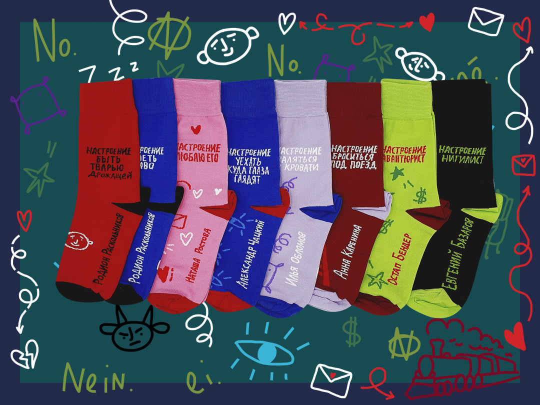 Сервис MyBook и бренд St. Friday Socks создали коллекцию, в которую вошли семь пар носков, вдохновленных героями отечественной книжной классики. Среди них — Анна Каренина, Наташа Ростова, Александр Чацкий, Илья Обломов, Родион Раскольников, Евгений Базаров и Остап Бендер. Модели отсылают к характерам, типичному поведению или событию, которое стало решающим в судьбе литературного персонажа.