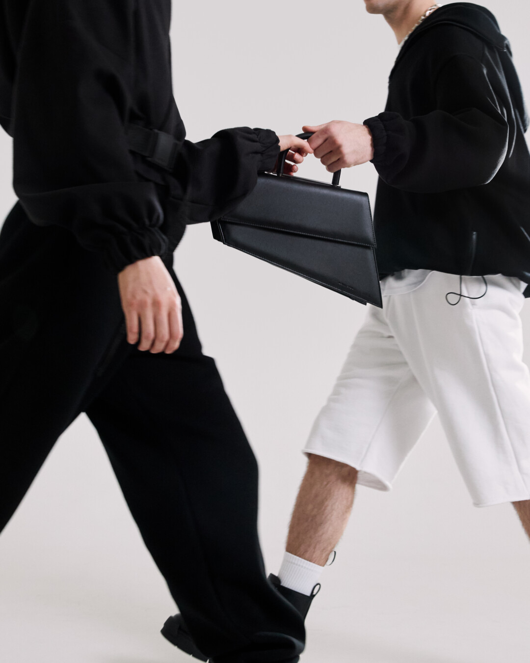 На счет невыключенного утюга можно больше не беспокоиться — теперь носим его с собой. Сумка из коллаборации двух петербургских марок — ARNYPRAHT и HUMANIST действительно напоминает этот бытовой прибор. Все дело в скошенной ассиметричной форме, вдохновленной, кстати, не реальным утюгом, а эклектикой архитектуры Петербурга.